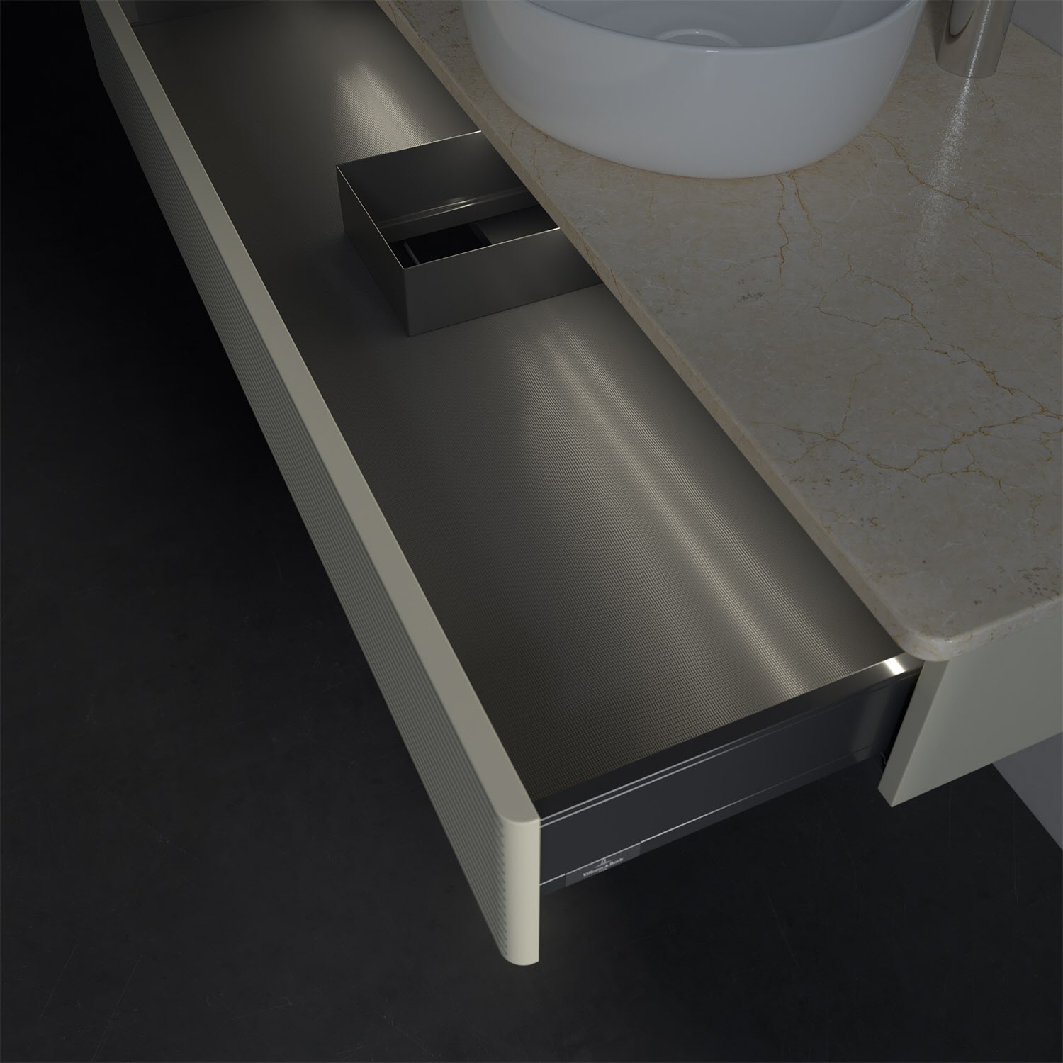 - kein Umfallen oder Verrutschen von Pflegeprodukten in den Schubladen dank rutschhemmendem Boden