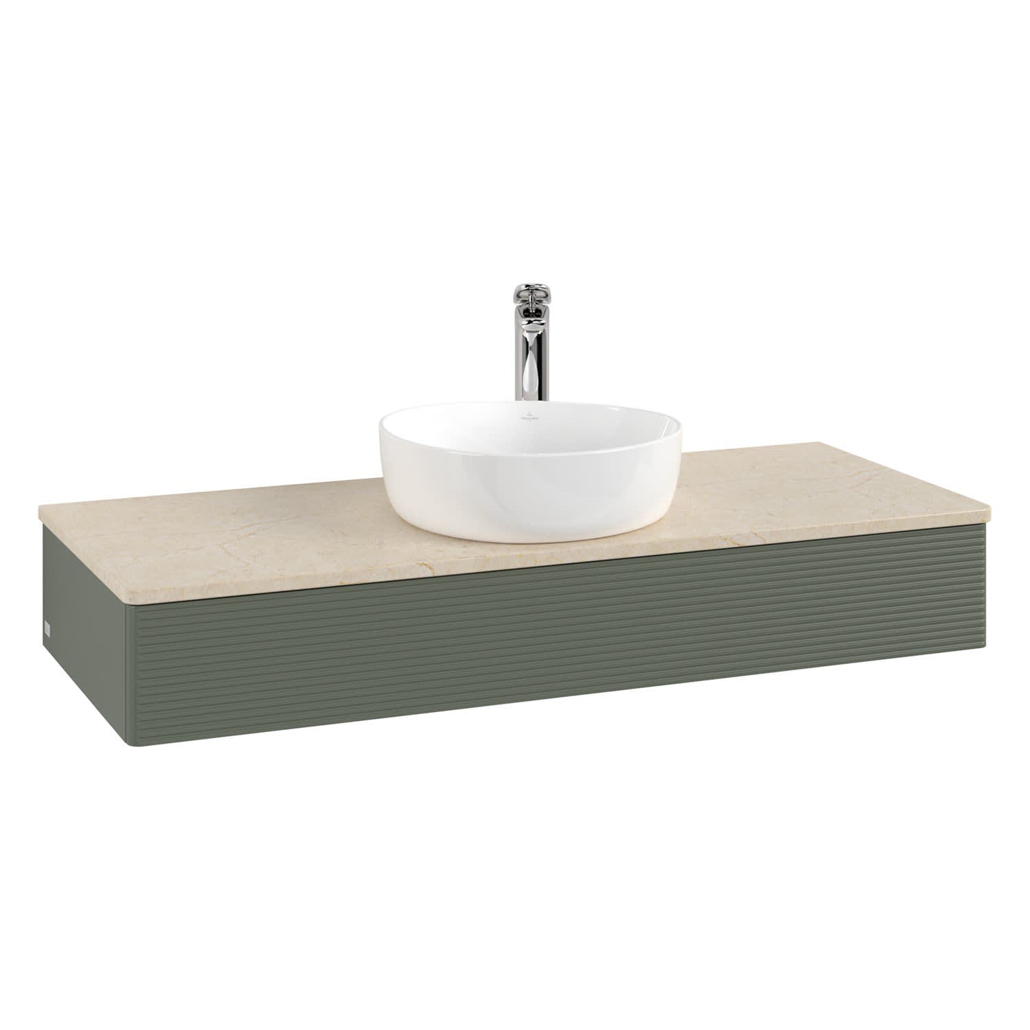 Villeroy & Boch Antao Waschbeckenunterschrank, 120 x 19 cm, 1 Auszug mit LED-Licht, Front mit Struktur, mit Hahnloch, für Waschtisch mittig
