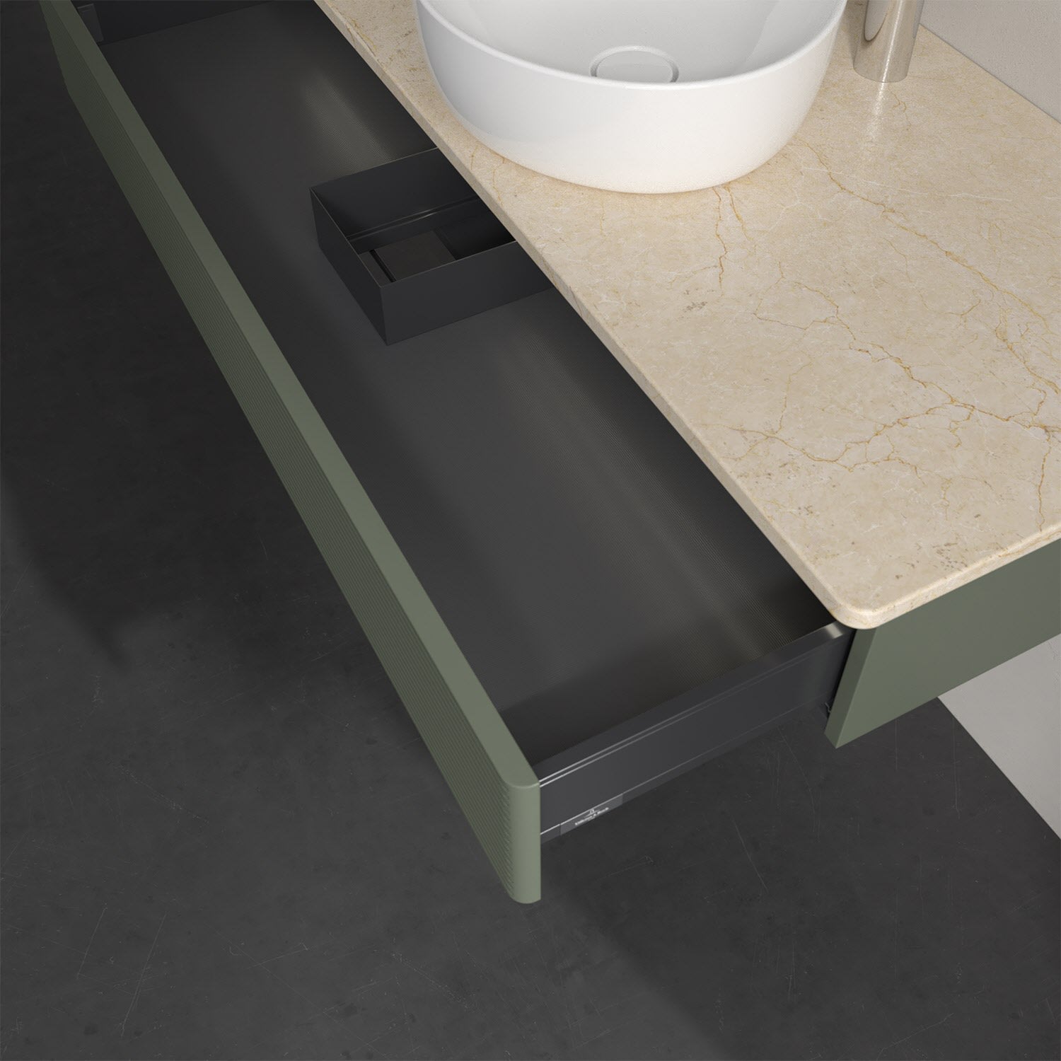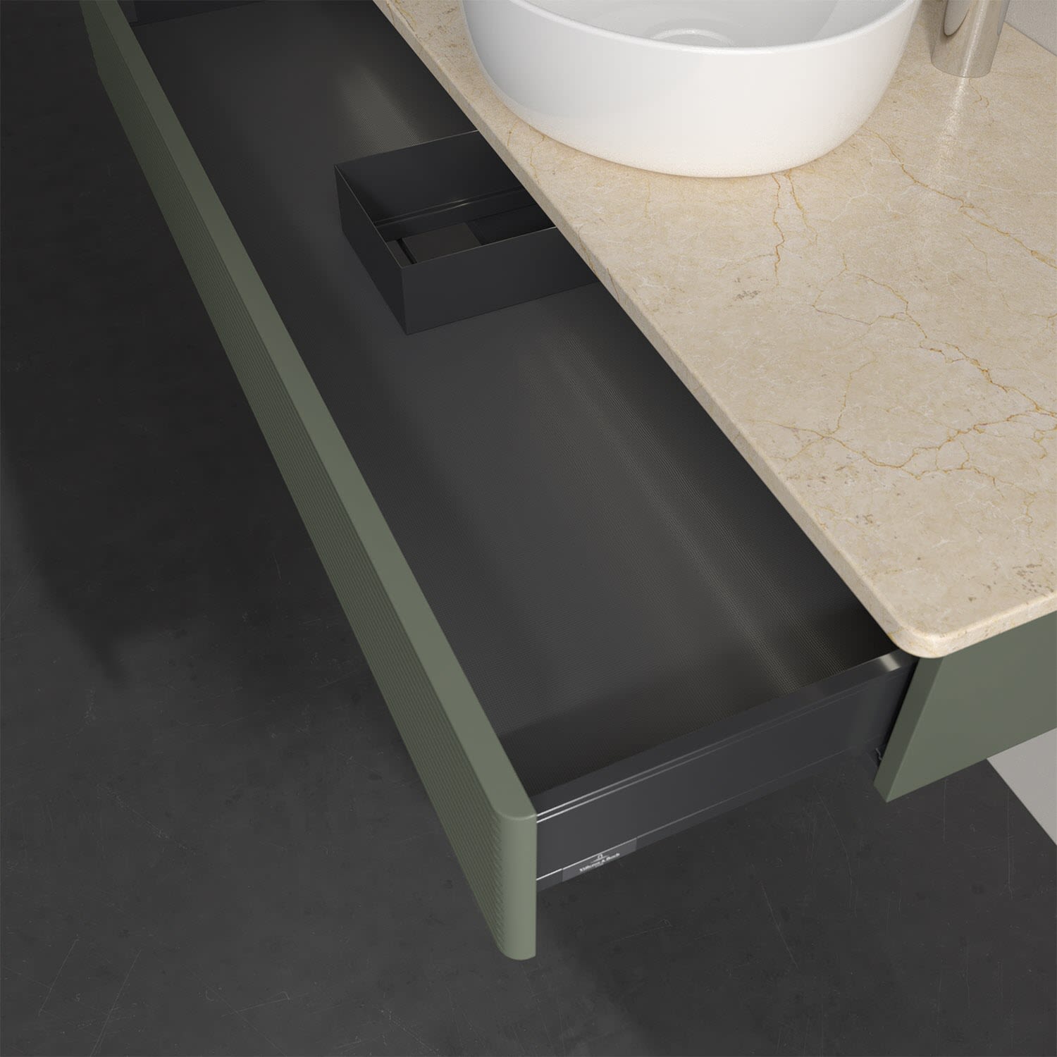 - kein Umfallen oder Verrutschen von Pflegeprodukten in den Schubladen dank rutschhemmendem Boden