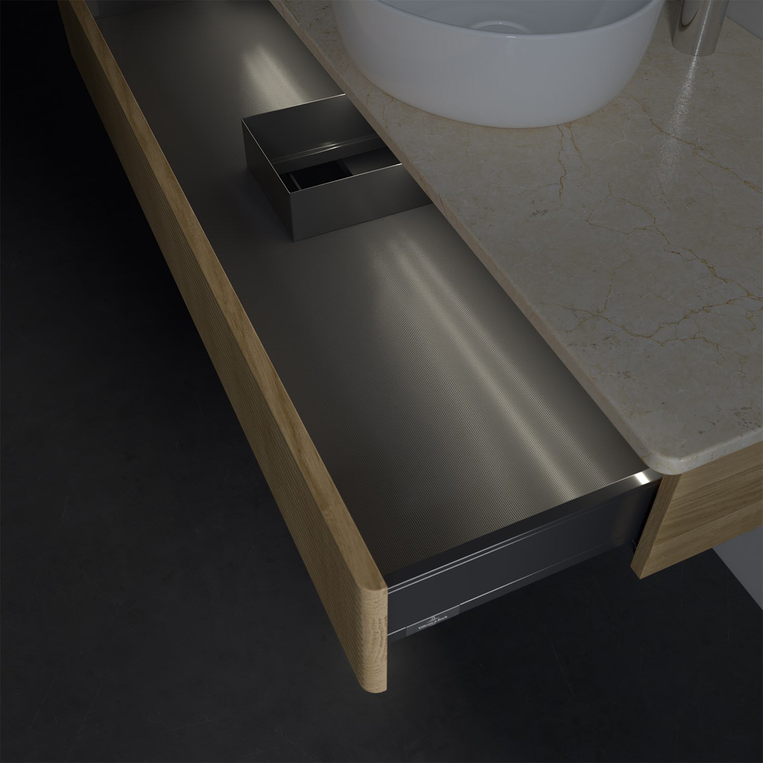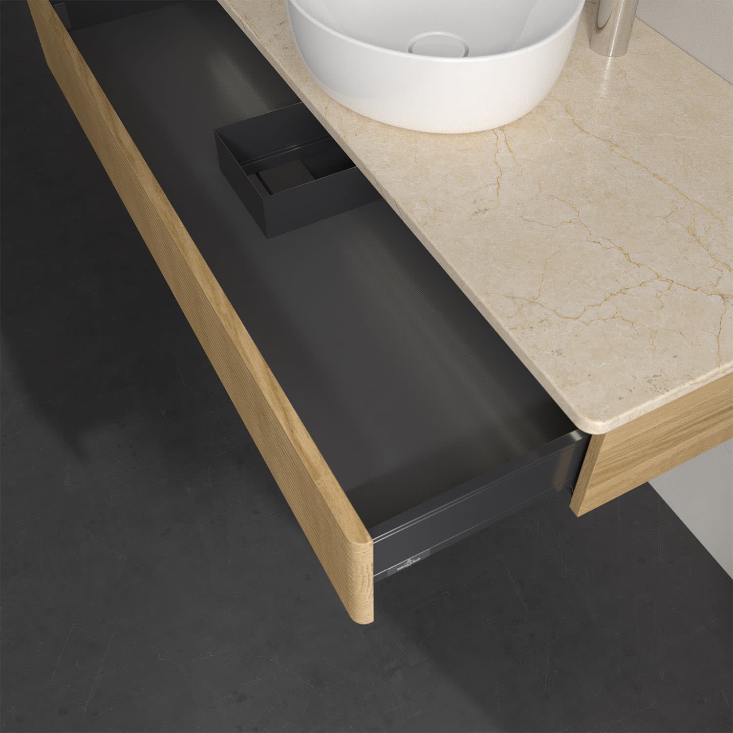 - kein Umfallen oder Verrutschen von Pflegeprodukten in den Schubladen dank rutschhemmendem Boden