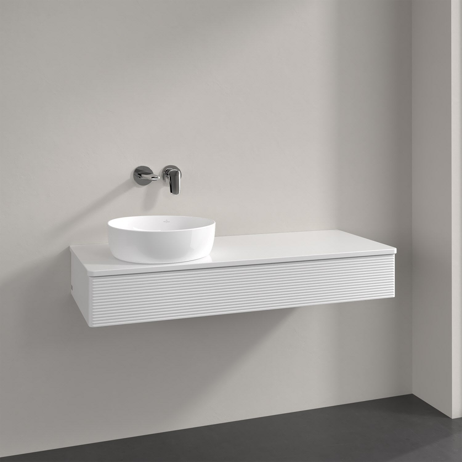 Villeroy & Boch Antao Waschbeckenunterschrank, 120 x 19 cm, 1 Auszug mit LED-Licht, Front mit Struktur, mit Hahnloch, für Waschtisch links