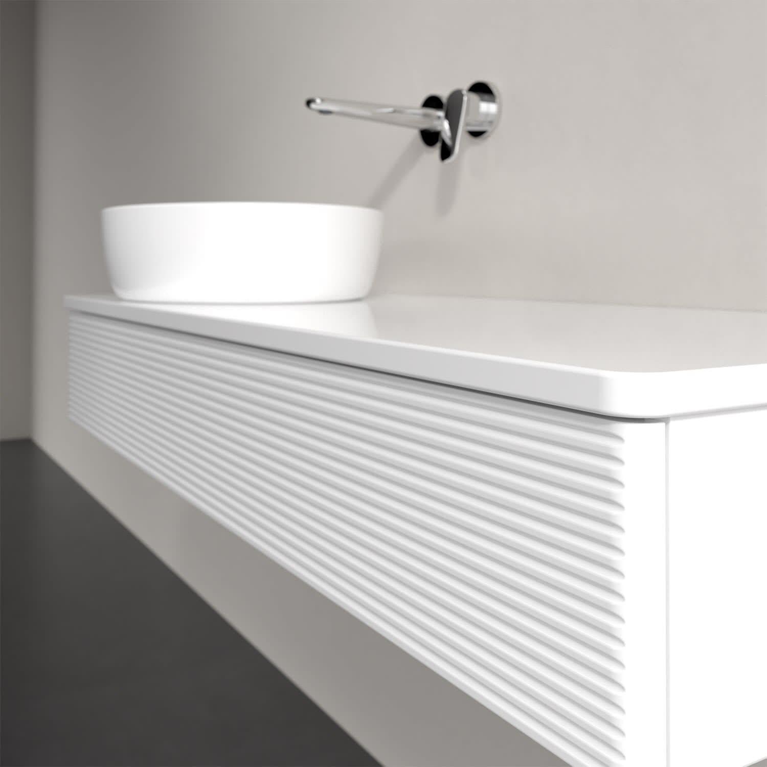 Der wandhängende Antao Waschtischunterschrank von Villeroy & Boch bietet nicht nur jede Menge Stauraum – er ist dank seines naturinspirierten Designs mit seinen abgerundeten Kanten auch noch besonders stilvoll und schafft eine gemütliche Atmosphäre im Badezimmer. Auf der Waschtischplatte bietet sich seitlich des Waschtischs viel Platz für Zahnbürstenbecher oder Seifenspender. Der geräumige Auszug bietet viel Platz, um alles Notwendige zu verstauen und Ordnung zu halten. Öffnen lässt er sich durch leichten Druck auf die strukturierte Front. Dabei aktiviert sich übrigens die Auszugsbeleuchtung in angenehmem Warmweiß. Dank Vollauszug hat man immer alles im Blick und der Antirutschboden verhindert ein Umfallen oder Verrutschen der Gegenstände. Einfach clever! Für eine besonders leichte Pflege sorgt die mehrschichtig deckend lackierte Oberfläche.