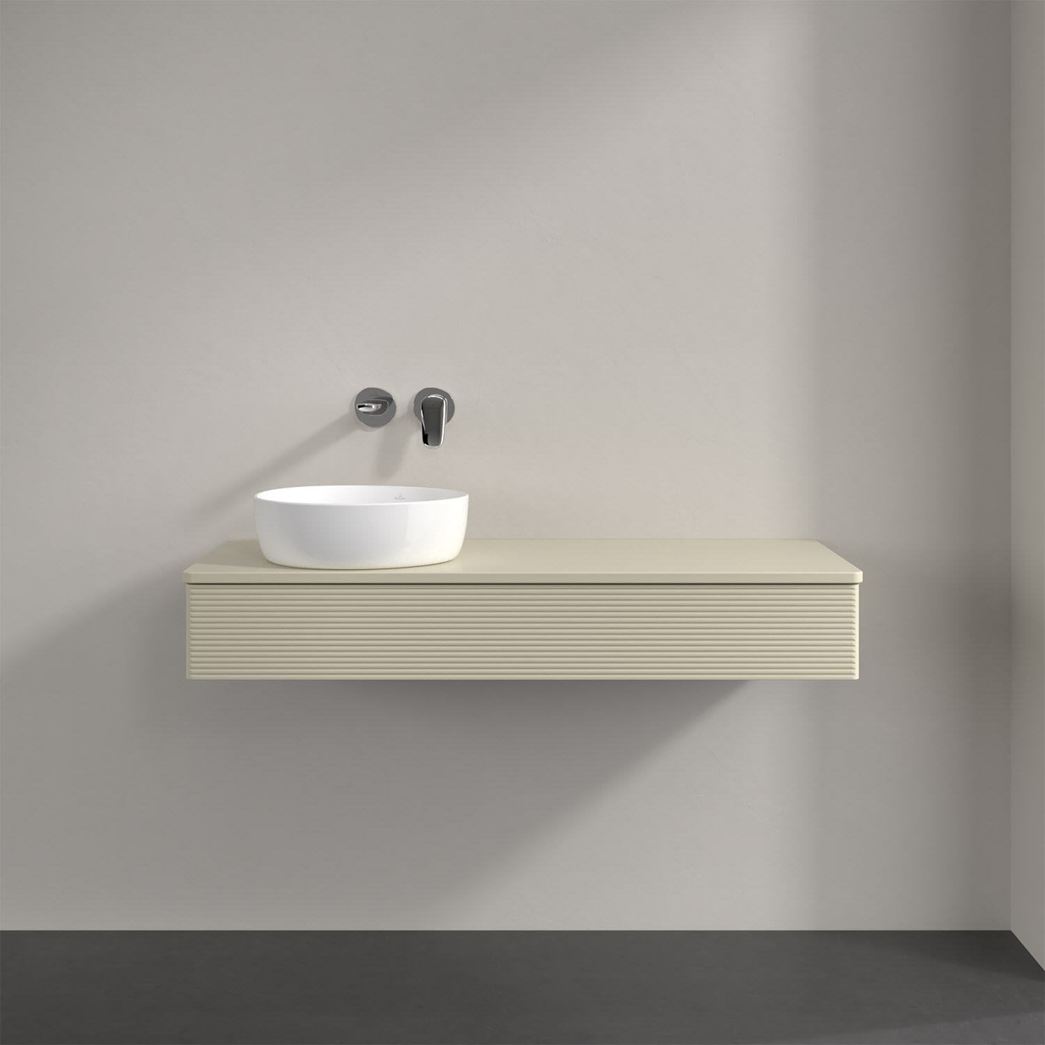 Villeroy & Boch Antao Waschbeckenunterschrank, 120 x 19 cm, 1 Auszug mit LED-Licht, Front mit Struktur, mit Hahnloch, für Waschtisch links