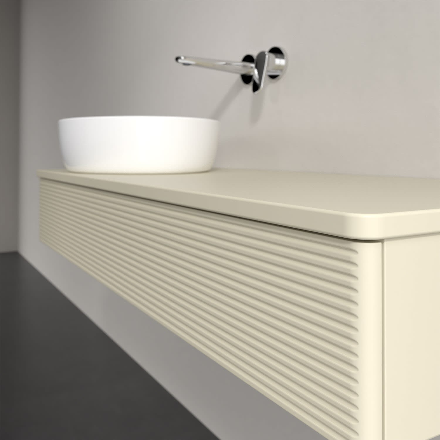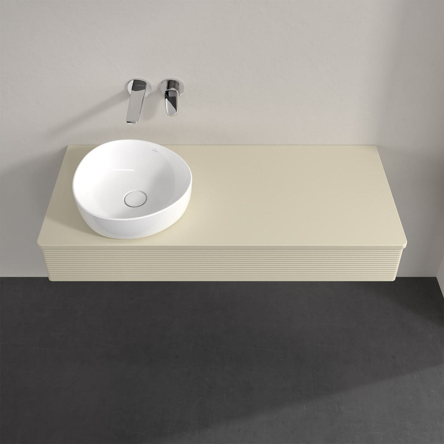 Für diesen Waschbeckenunterschrank stehen Ihnen Aufsatzwaschtische aus verschiedenen Serien zur Verfügung (siehe "Passliste" unter Downloads). Ein ausgewähltes Beispiel finden Sie im Zubehör. Den Waschtisch bitte separat mitbestellen.