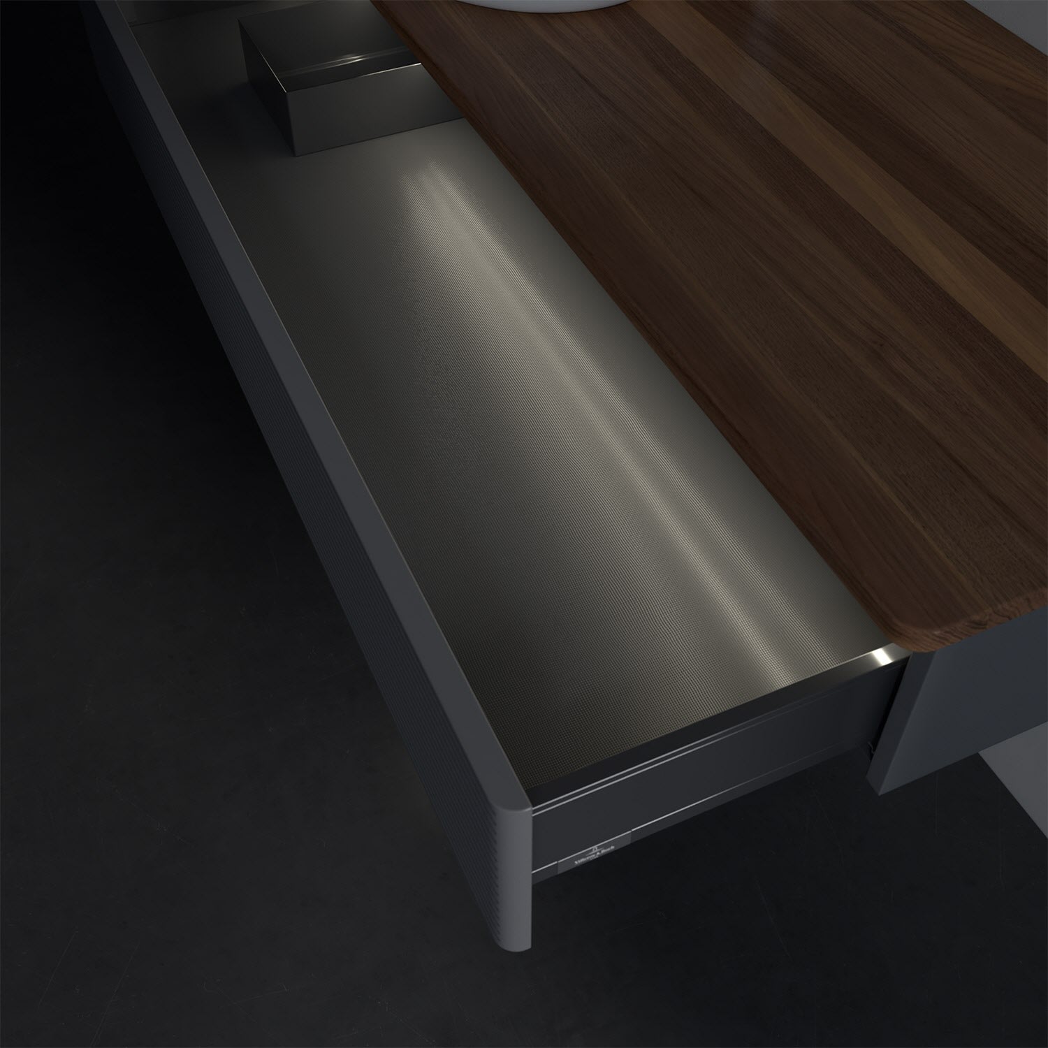 - in Schublade integrierte LED-Leiste mit warmweißem Licht zur Beleuchtung des Innenlebens