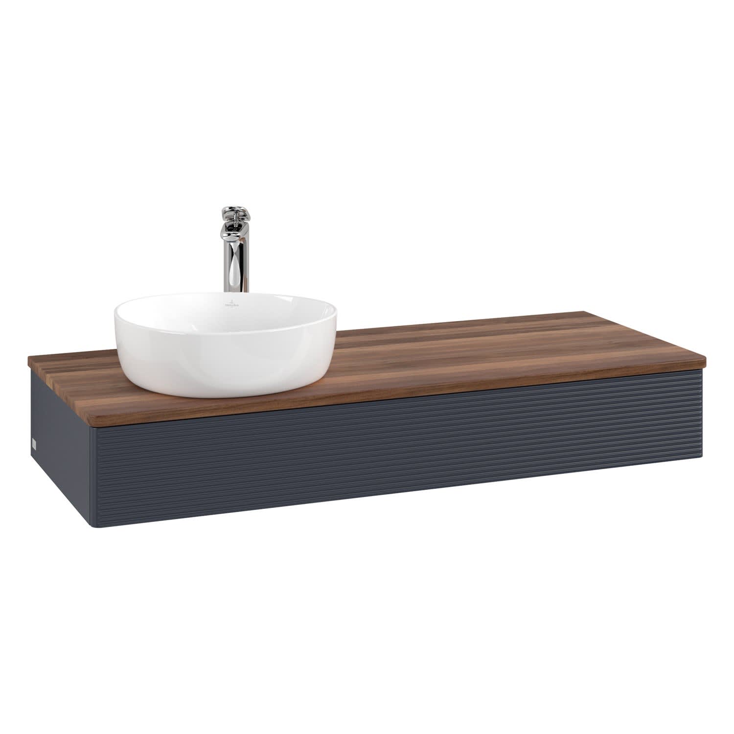 Villeroy & Boch Antao Waschbeckenunterschrank, 120 x 19 cm, 1 Auszug mit LED-Licht, Front mit Struktur, mit Hahnloch, für Waschtisch links