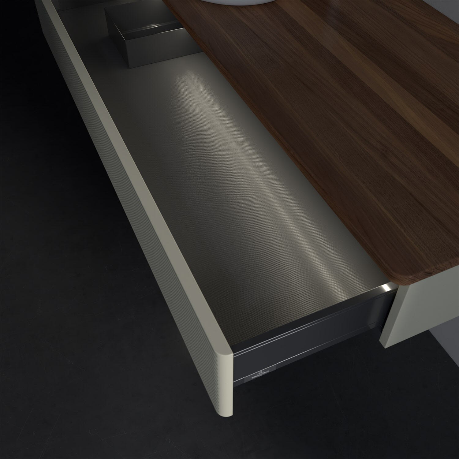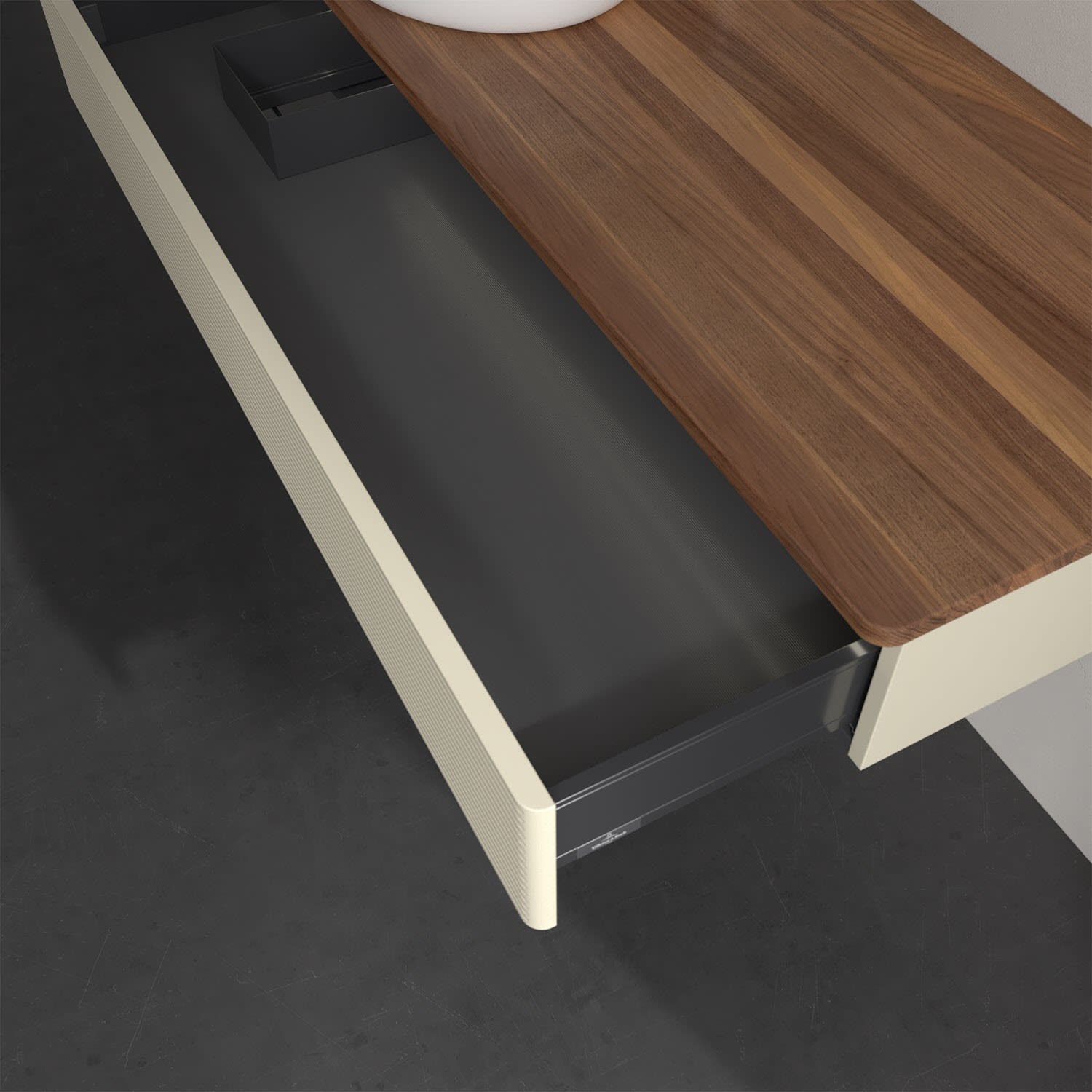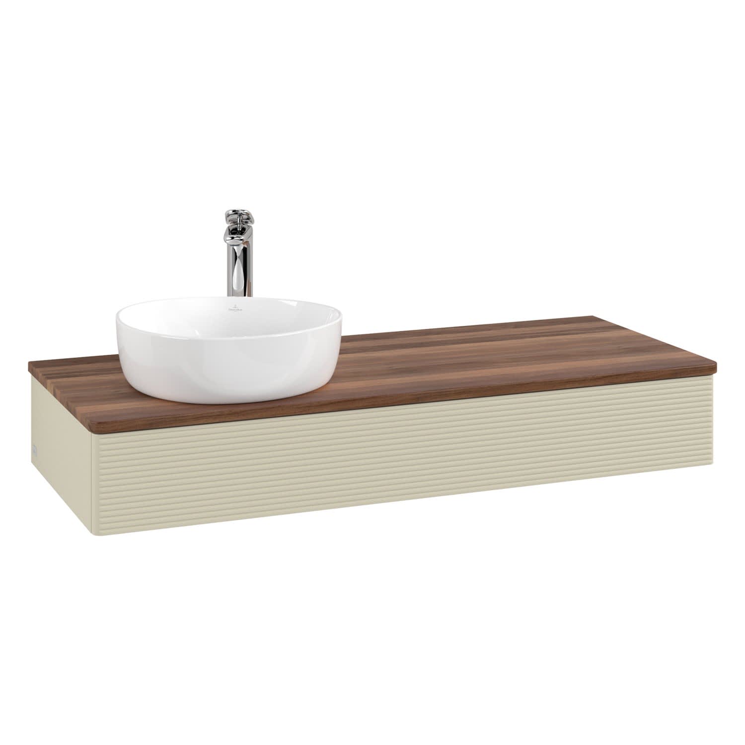Villeroy & Boch Antao Waschbeckenunterschrank, 120 x 19 cm, 1 Auszug mit LED-Licht, Front mit Struktur, mit Hahnloch, für Waschtisch links