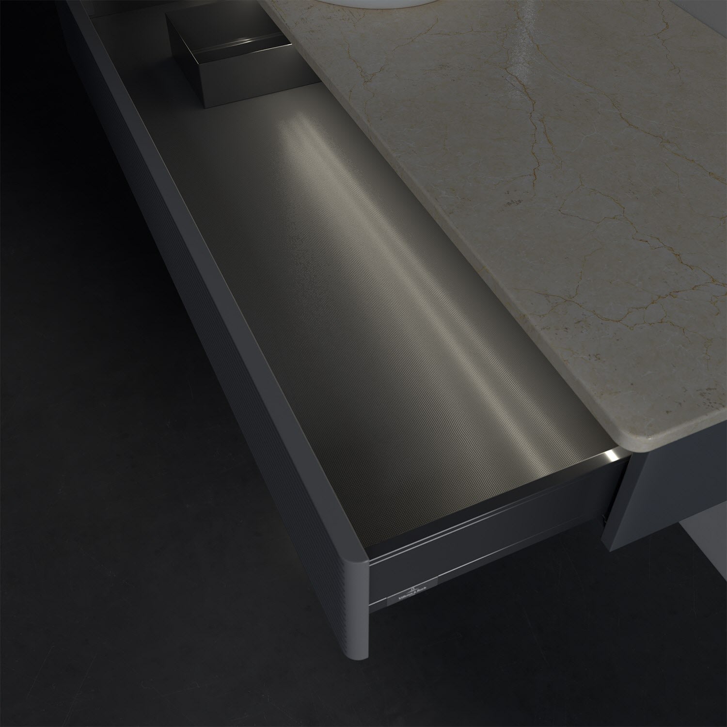 Villeroy & Boch Antao Waschbeckenunterschrank, 120 x 19 cm, 1 Auszug mit LED-Licht, Front mit Struktur, mit Hahnloch, für Waschtisch links