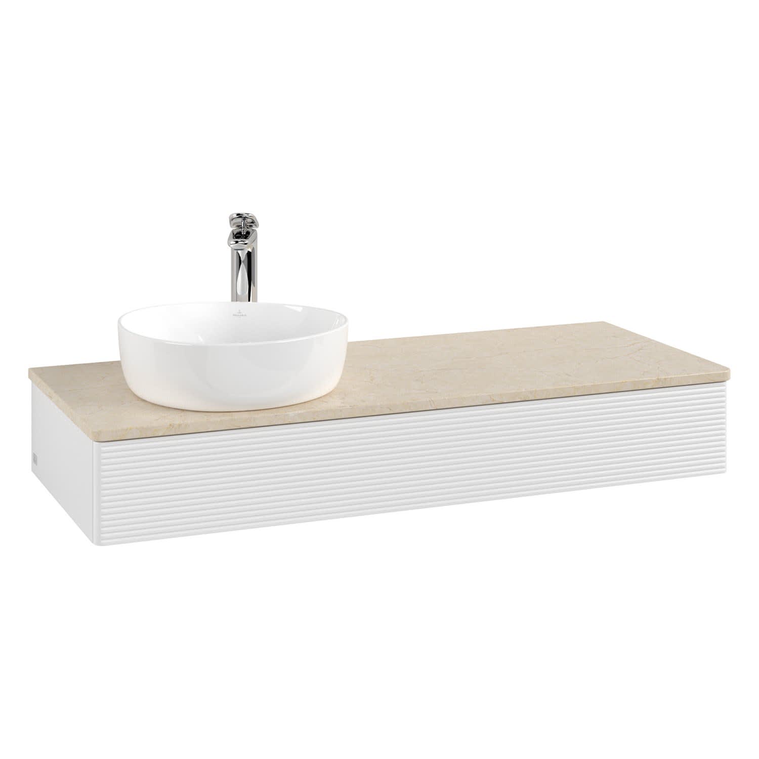 Villeroy & Boch Antao Waschbeckenunterschrank, 120 x 19 cm, 1 Auszug mit LED-Licht, Front mit Struktur, mit Hahnloch, für Waschtisch links