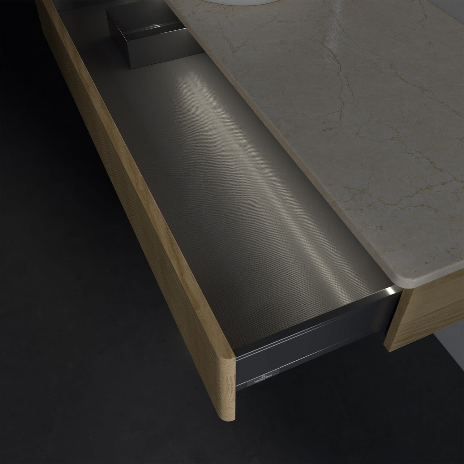 Villeroy & Boch Antao Waschbeckenunterschrank, 120 x 19 cm, 1 Auszug mit LED-Licht, Front mit Struktur, mit Hahnloch, für Waschtisch links
