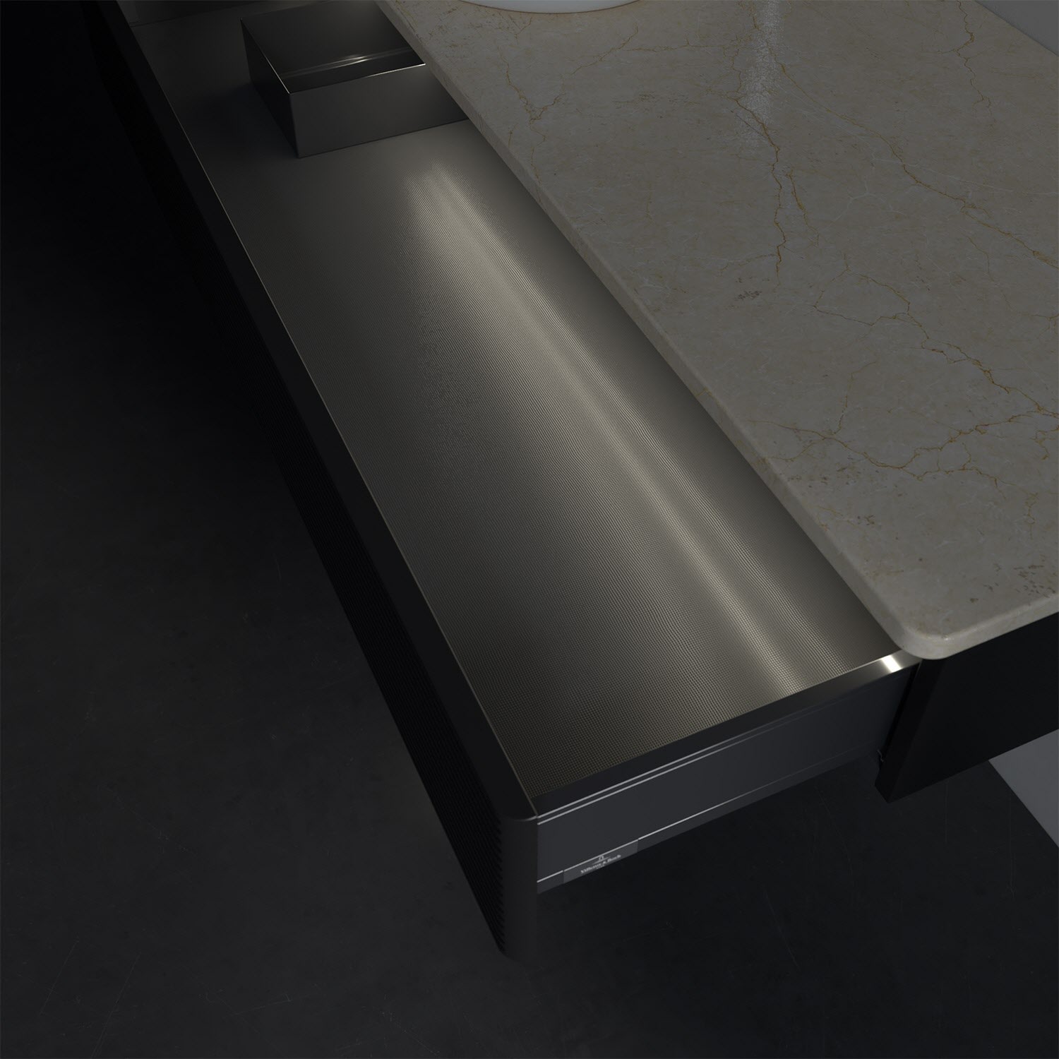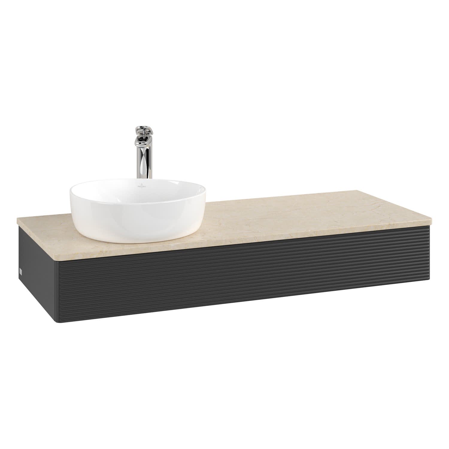 Villeroy & Boch Antao Waschbeckenunterschrank, 120 x 19 cm, 1 Auszug mit LED-Licht, Front mit Struktur, mit Hahnloch, für Waschtisch links