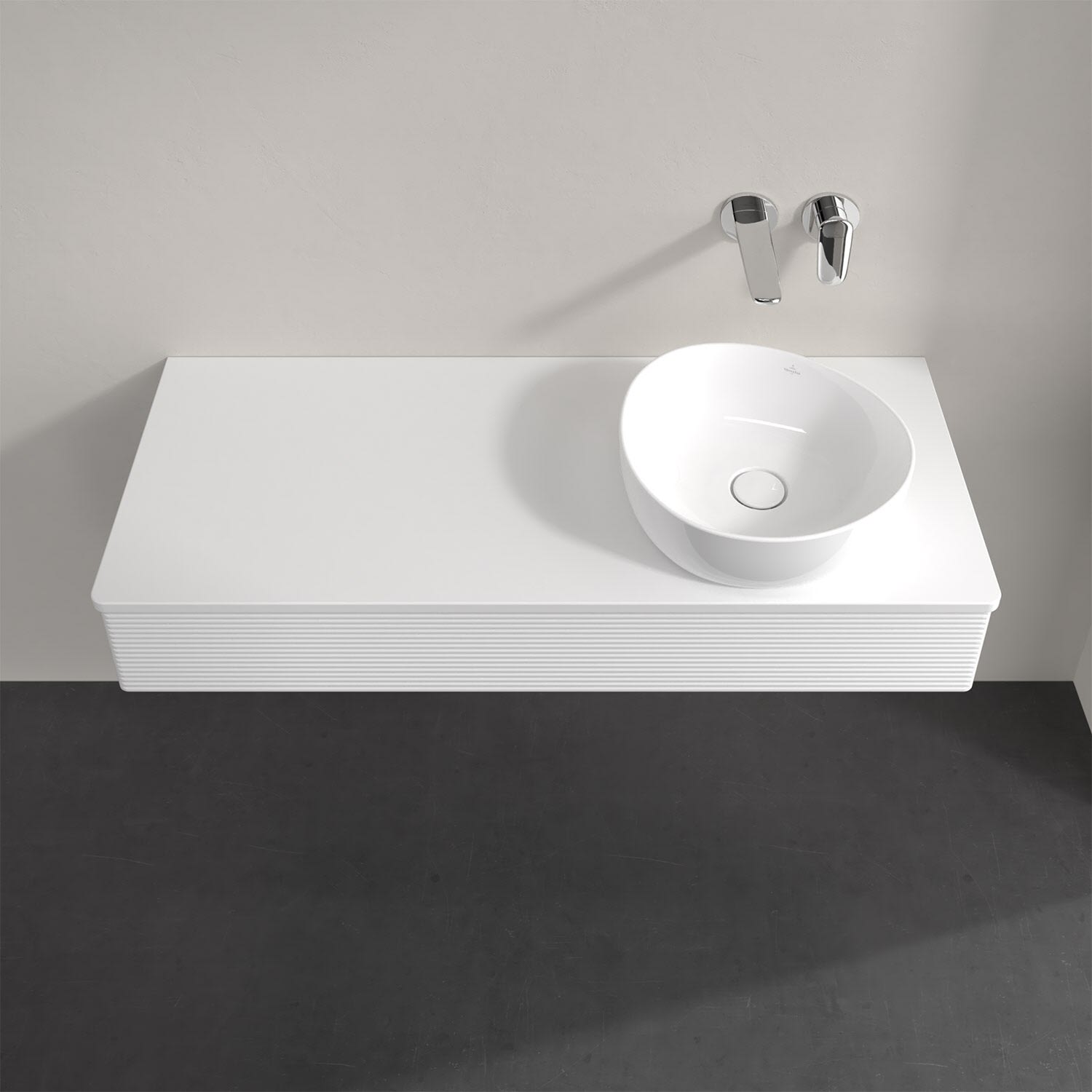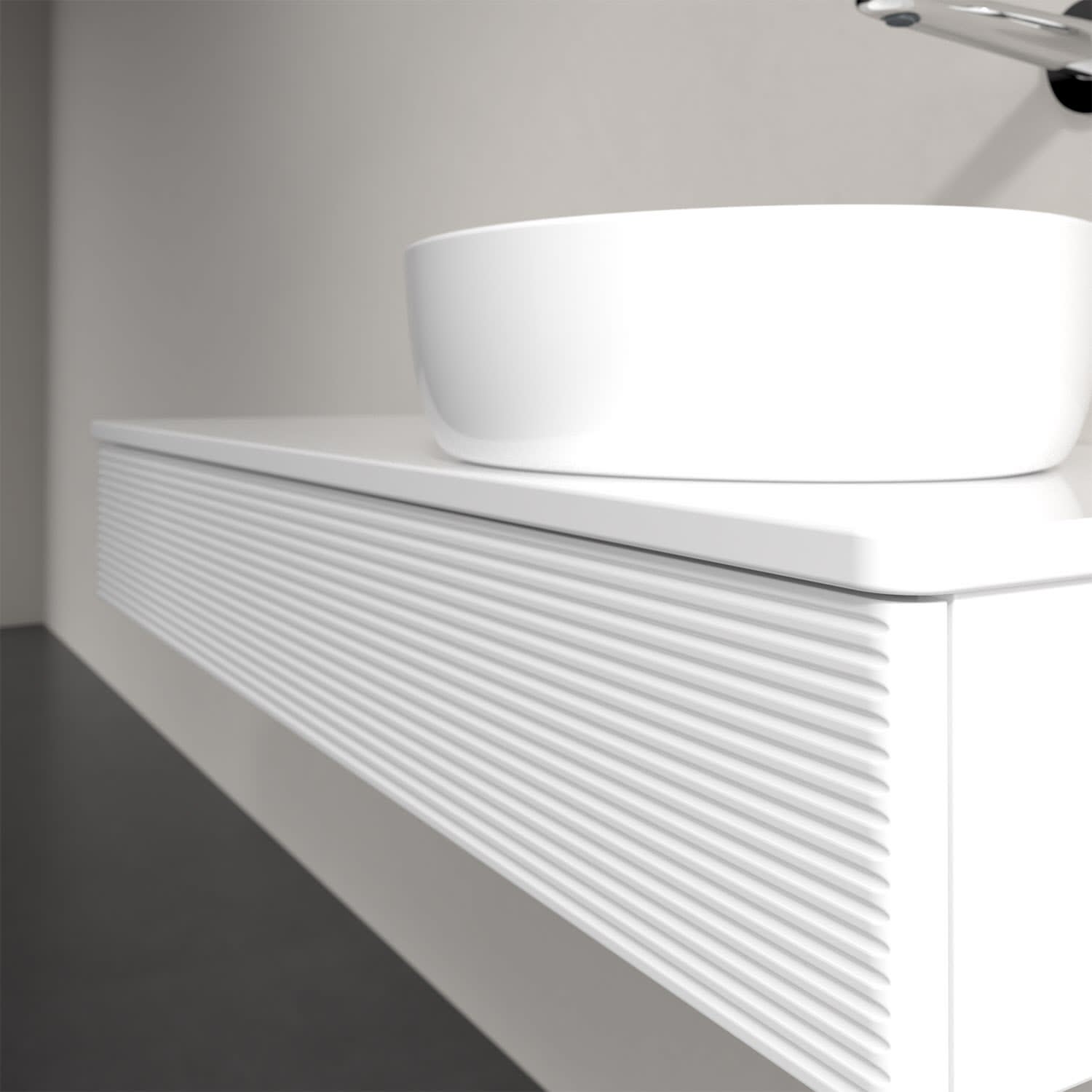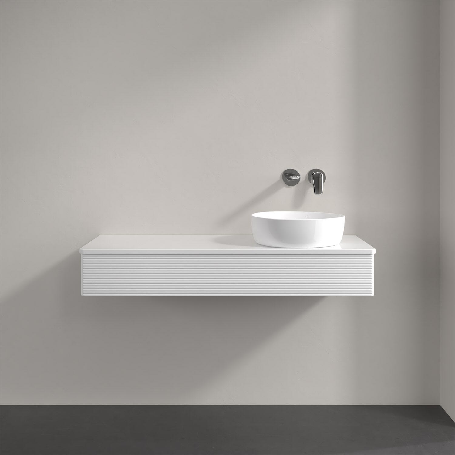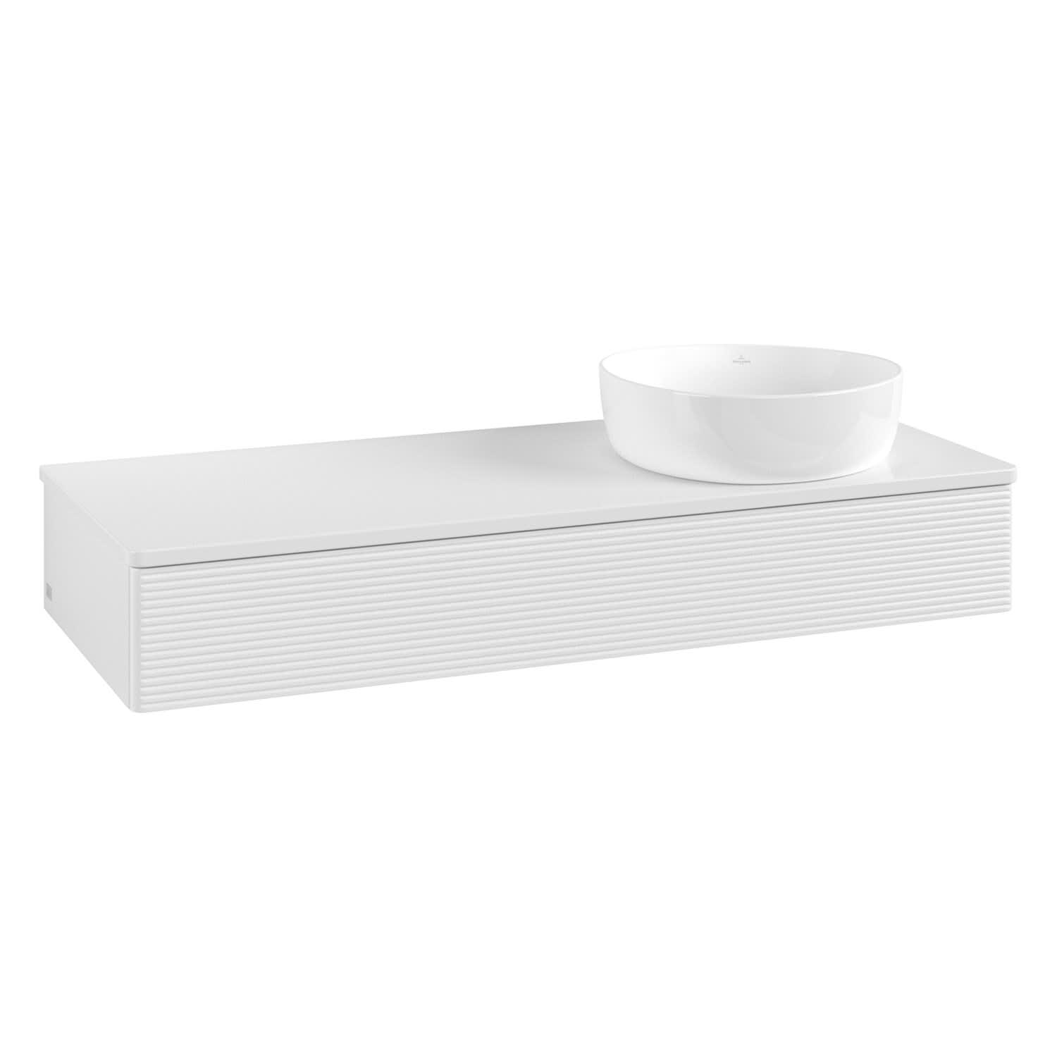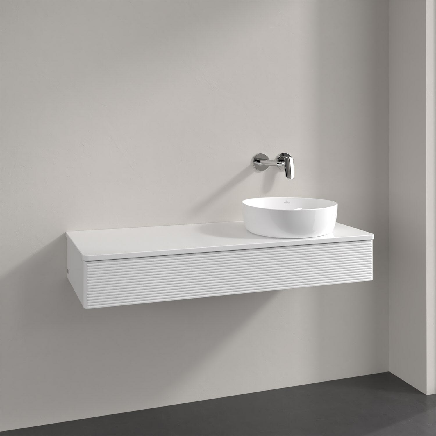 Villeroy & Boch Antao Waschbeckenunterschrank, 120 x 19 cm, 1 Auszug mit LED-Licht, Front mit Struktur, mit Hahnloch, für Waschtisch rechts