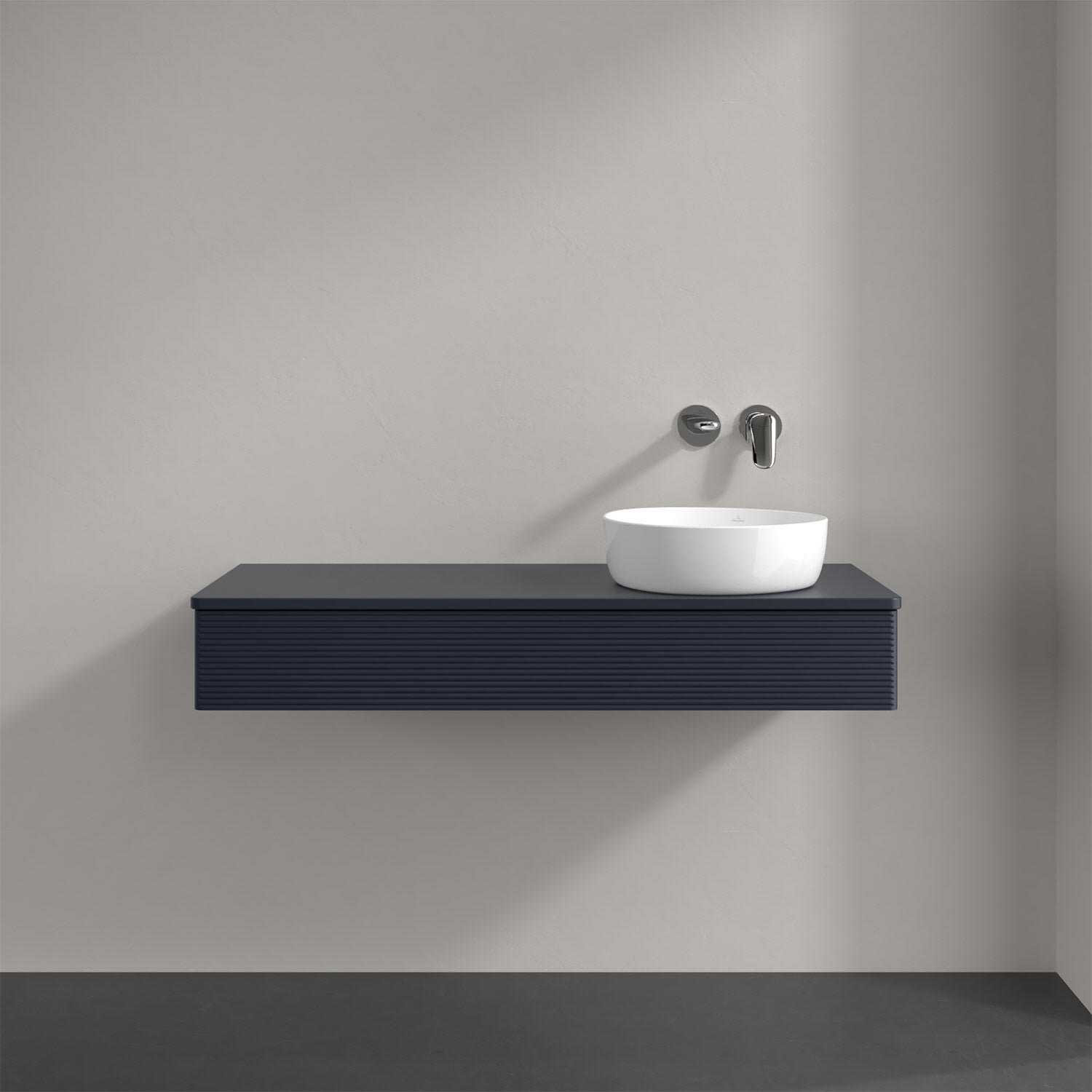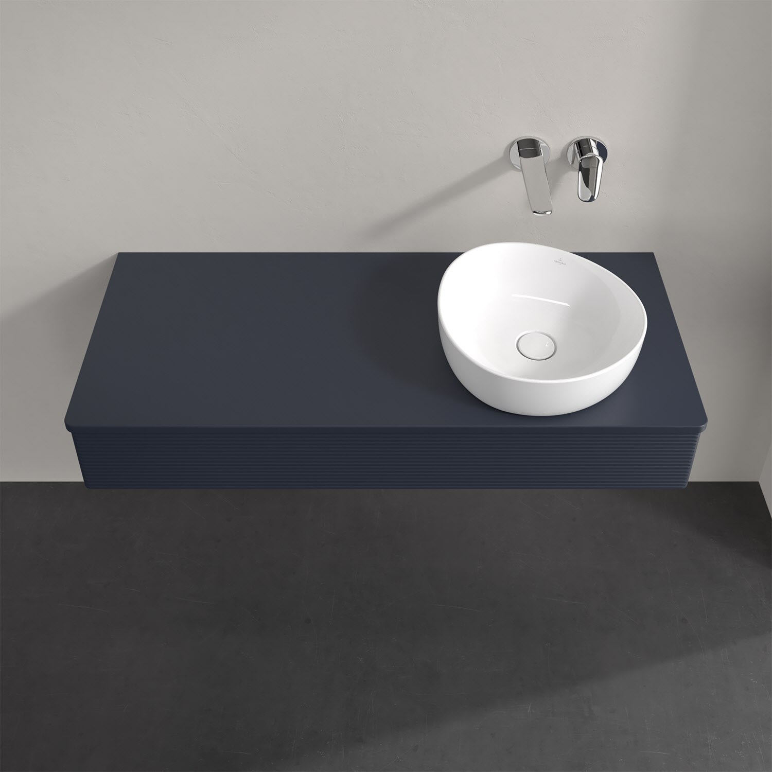 Villeroy & Boch Antao Waschbeckenunterschrank, 120 x 19 cm, 1 Auszug mit LED-Licht, Front mit Struktur, mit Hahnloch, für Waschtisch rechts