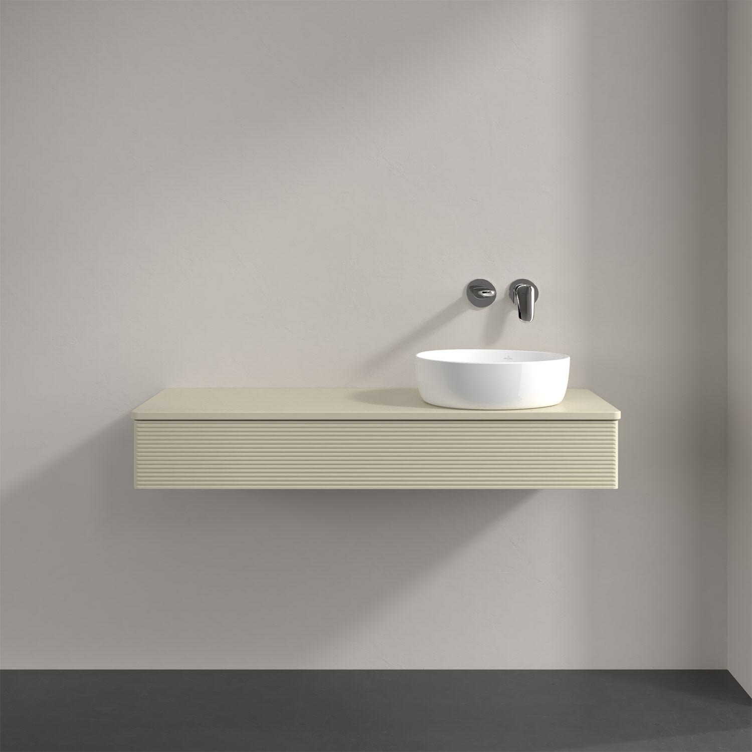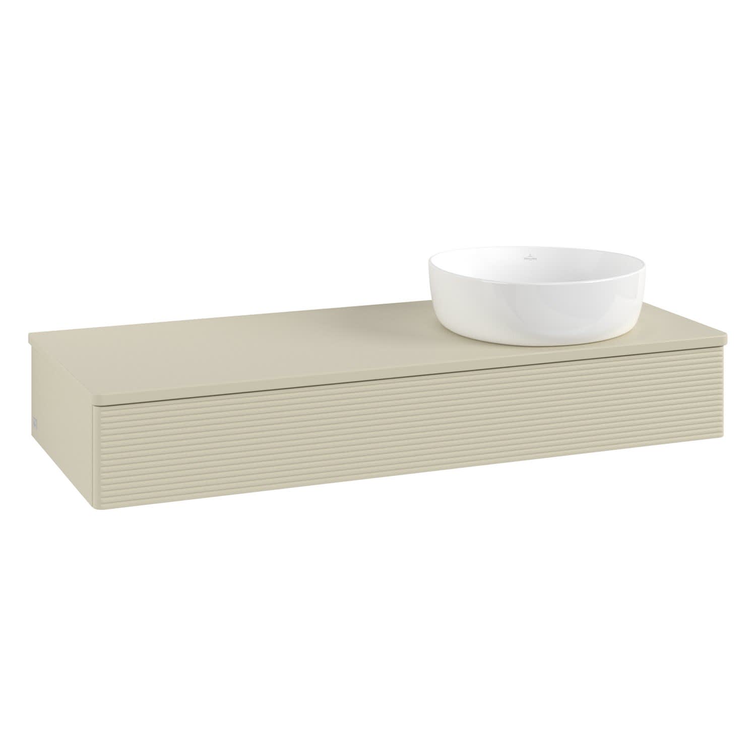Villeroy & Boch Antao Waschbeckenunterschrank, 120 x 19 cm, 1 Auszug mit LED-Licht, Front mit Struktur, mit Hahnloch, für Waschtisch rechts