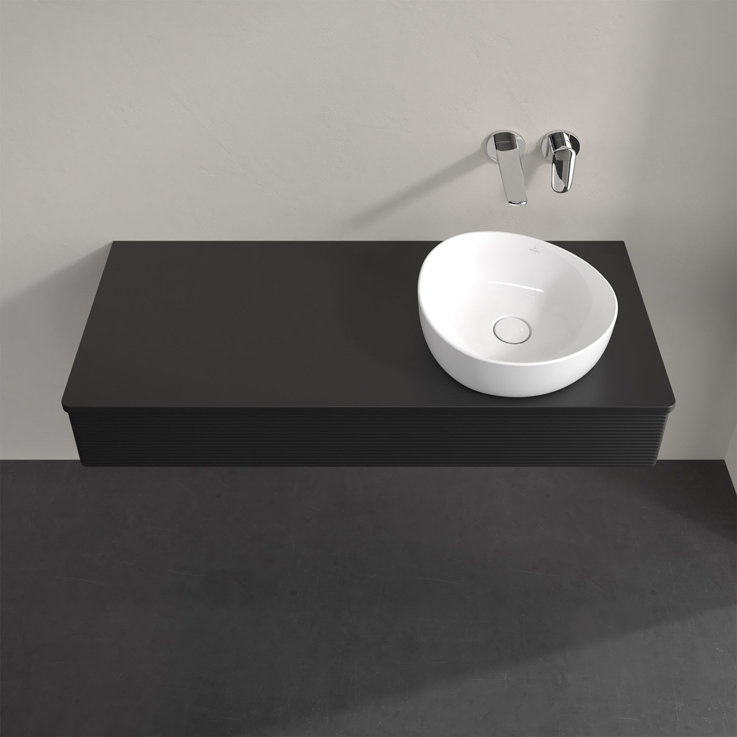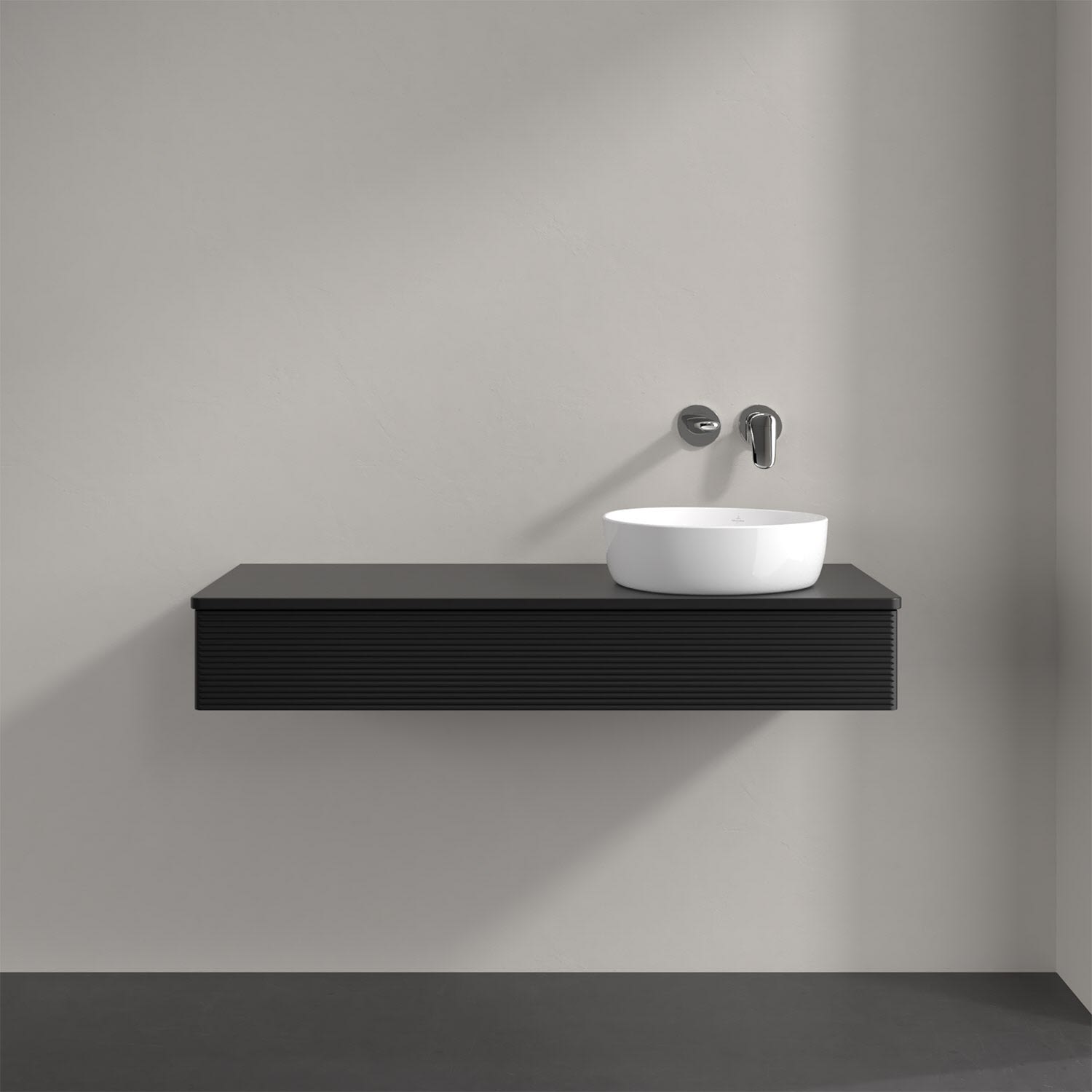 Villeroy & Boch Antao Waschbeckenunterschrank, 120 x 19 cm, 1 Auszug mit LED-Licht, Front mit Struktur, mit Hahnloch, für Waschtisch rechts