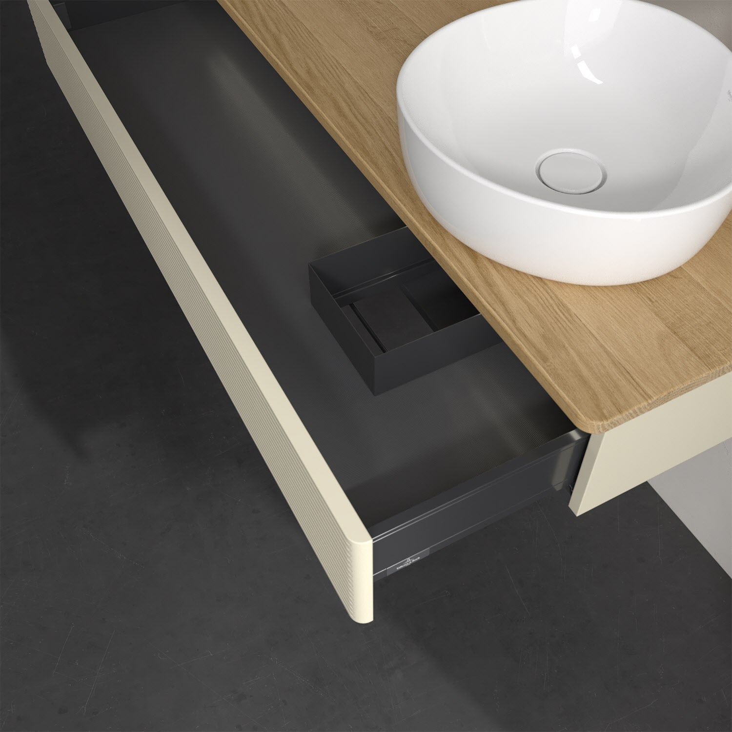 Villeroy & Boch Antao Waschbeckenunterschrank, 120 x 19 cm, 1 Auszug mit LED-Licht, Front mit Struktur, mit Hahnloch, für Waschtisch rechts