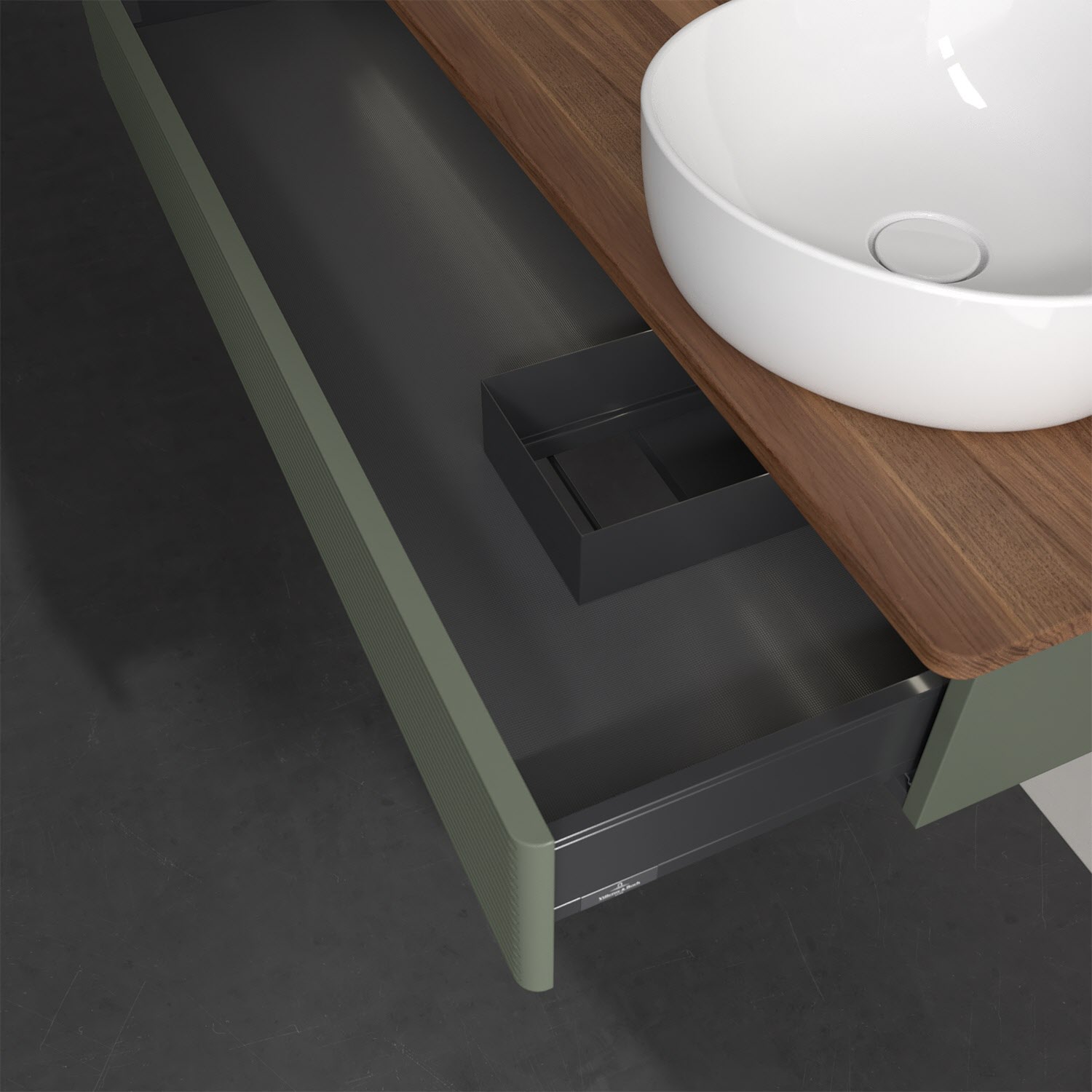 Für diesen Waschbeckenunterschrank stehen Ihnen Aufsatzwaschtische aus verschiedenen Serien zur Verfügung (siehe "Passliste" unter Downloads). Ein ausgewähltes Beispiel finden Sie im Zubehör. Den Waschtisch bitte separat mitbestellen.
