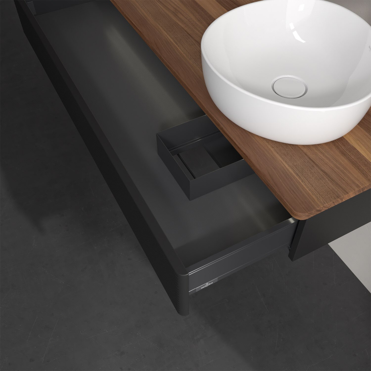 Für diesen Waschbeckenunterschrank stehen Ihnen Aufsatzwaschtische aus verschiedenen Serien zur Verfügung (siehe "Passliste" unter Downloads). Ein ausgewähltes Beispiel finden Sie im Zubehör. Den Waschtisch bitte separat mitbestellen.