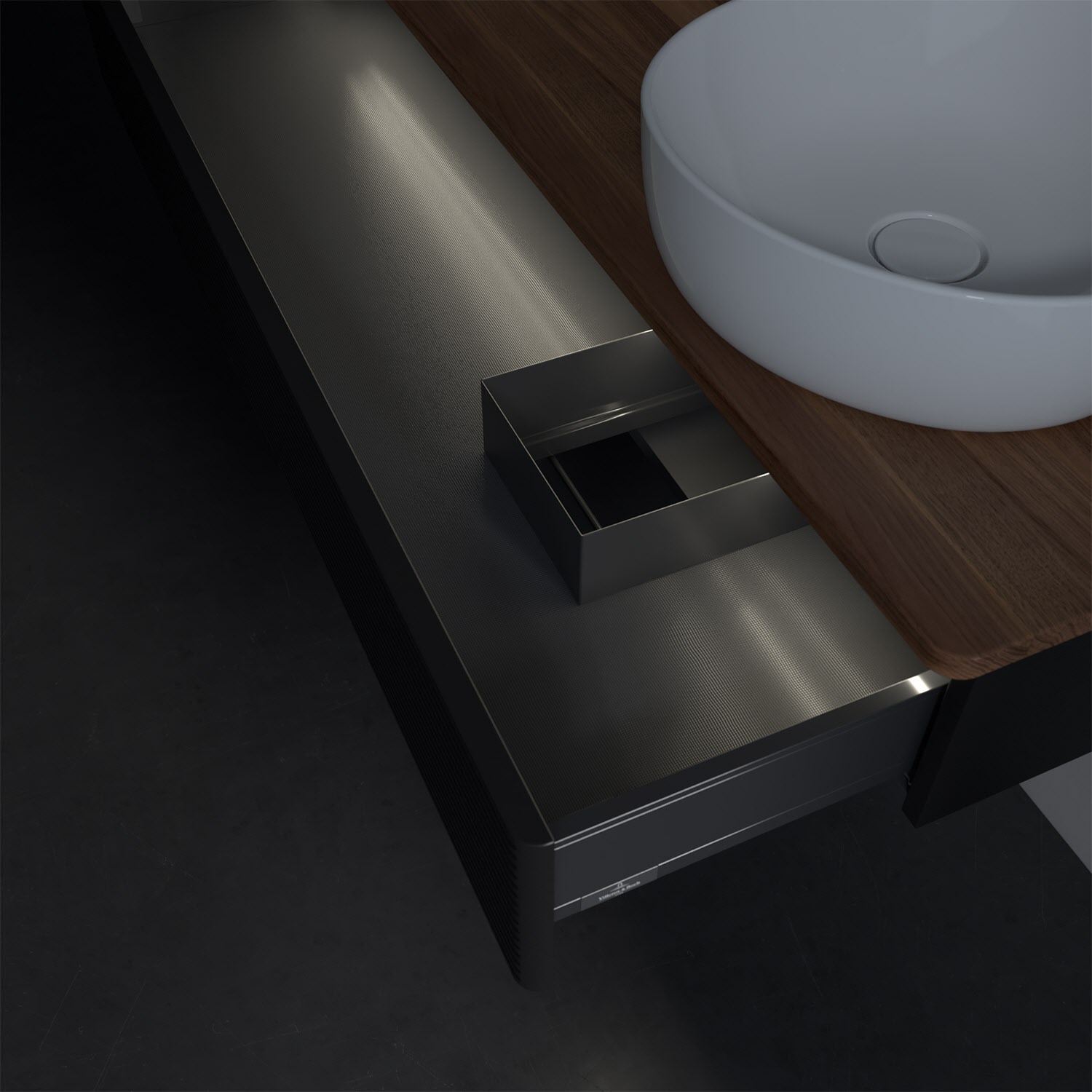 - in Schublade integrierte LED-Leiste mit warmweißem Licht zur Beleuchtung des Innenlebens