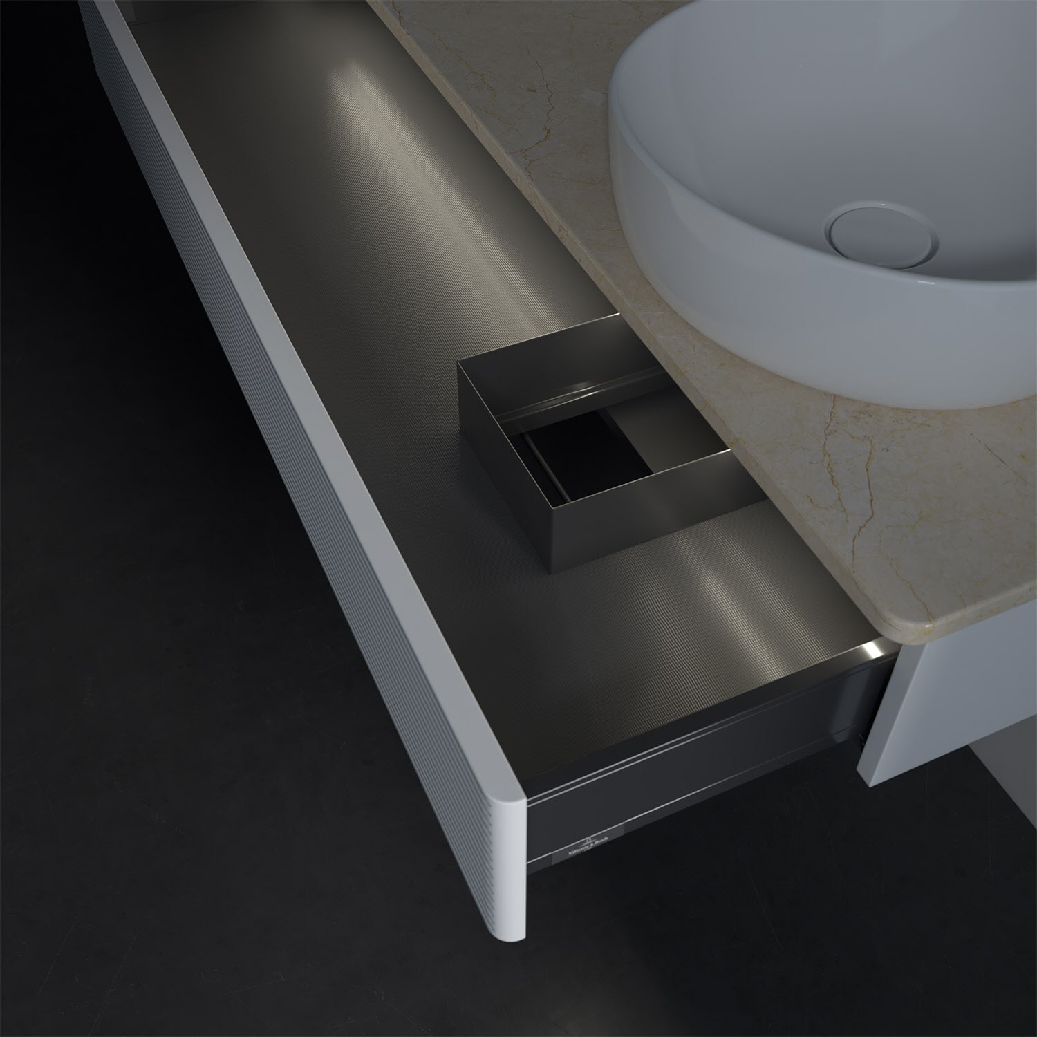- kein Umfallen oder Verrutschen von Pflegeprodukten in den Schubladen dank rutschhemmendem Boden