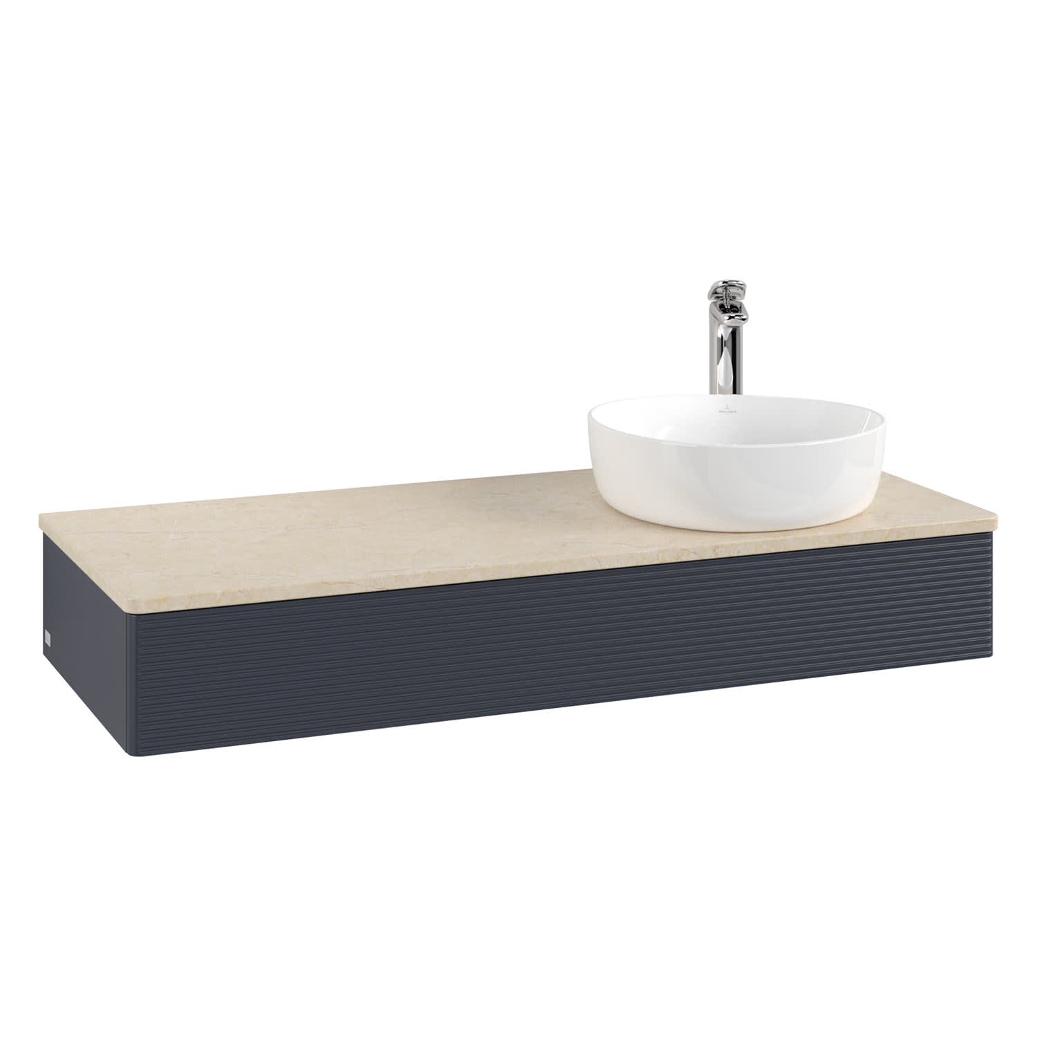 Villeroy & Boch Antao Waschbeckenunterschrank, 120 x 19 cm, 1 Auszug mit LED-Licht, Front mit Struktur, mit Hahnloch, für Waschtisch rechts