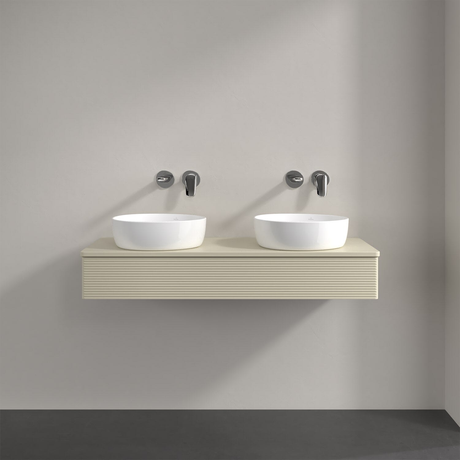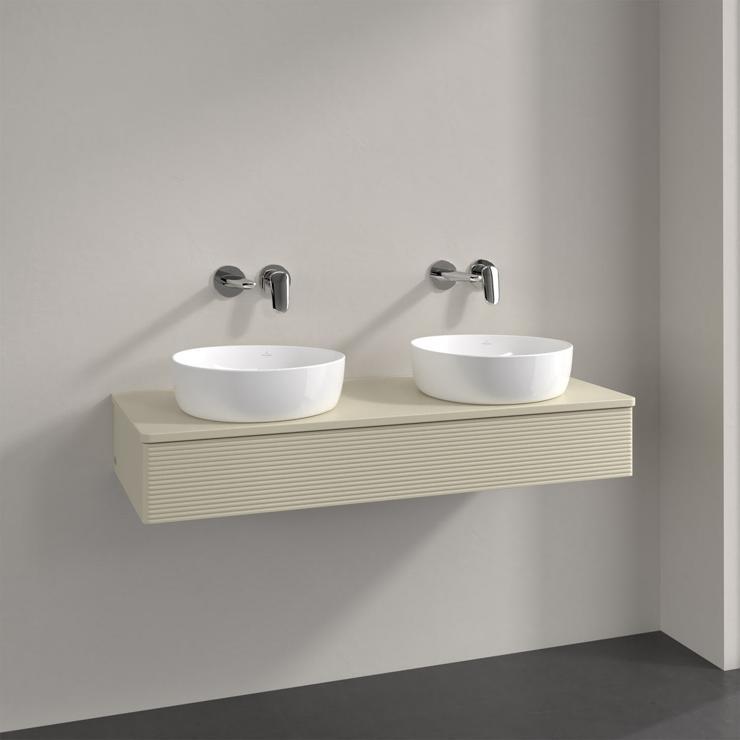 Der wandhängende Antao Waschtischunterschrank von Villeroy & Boch bietet nicht nur jede Menge Stauraum – er ist dank seines naturinspirierten Designs mit seinen abgerundeten Kanten auch noch besonders stilvoll und schafft eine gemütliche Atmosphäre im Badezimmer. Kombiniert mit zwei passenden Aufsatzwaschtischen also die ideale Wahl. Der geräumige Auszug bietet viel Platz, um alles Notwendige zu verstauen und Ordnung zu halten. Öffnen lässt er sich durch leichten Druck auf die strukturierte Front. Dabei aktiviert sich übrigens die Auszugsbeleuchtung in angenehmem Warmweiß. Dank Vollauszug hat man immer alles im Blick und der Antirutschboden verhindert ein Umfallen oder Verrutschen der Gegenstände. Einfach clever! Für eine besonders leichte Pflege sorgt die mehrschichtig deckend lackierte Oberfläche.