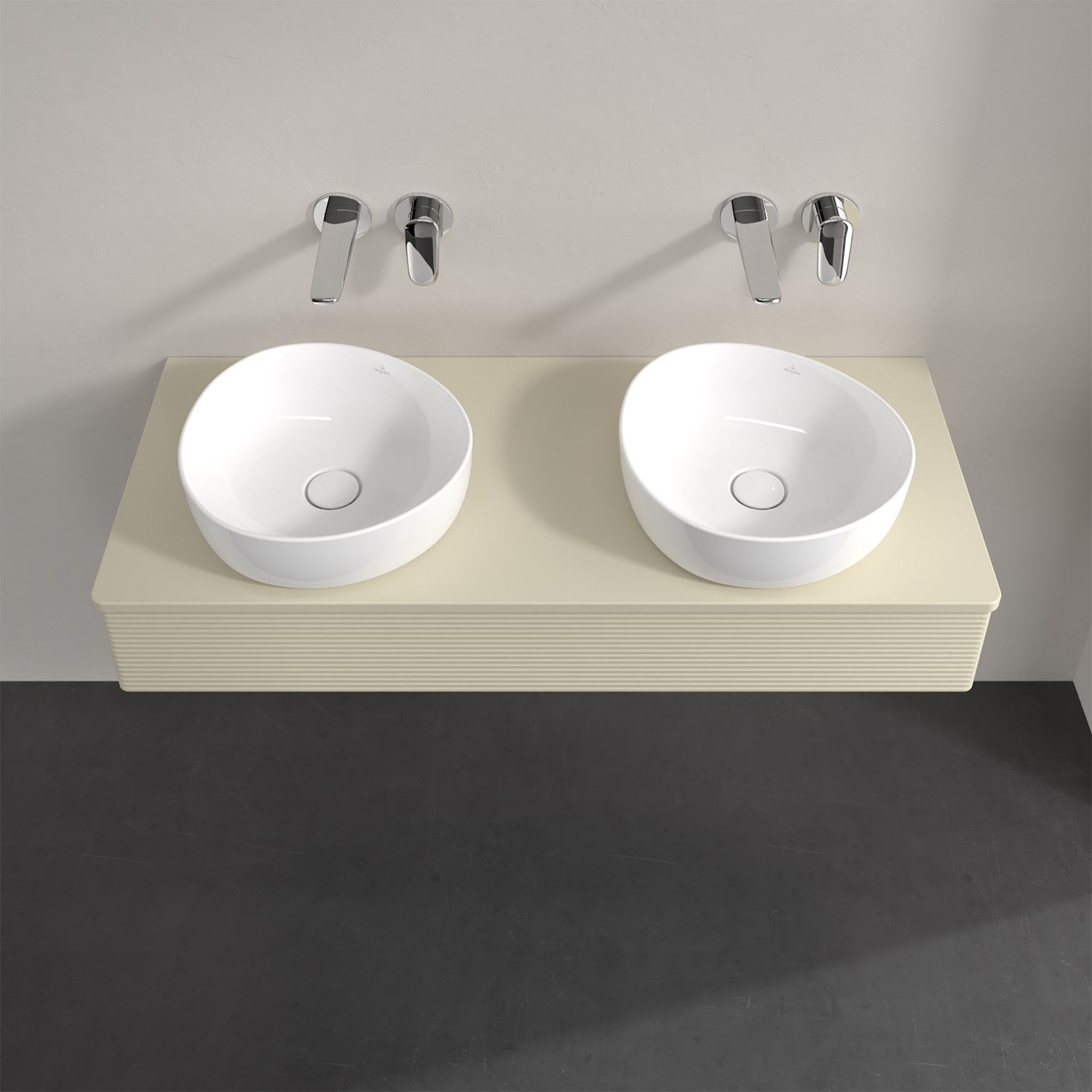Für diesen Waschbeckenunterschrank stehen Ihnen Aufsatzwaschtische aus verschiedenen Serien zur Verfügung (siehe "Passliste" unter Downloads). Ein ausgewähltes Beispiel finden Sie im Zubehör. Den Waschtisch bitte separat mitbestellen.
