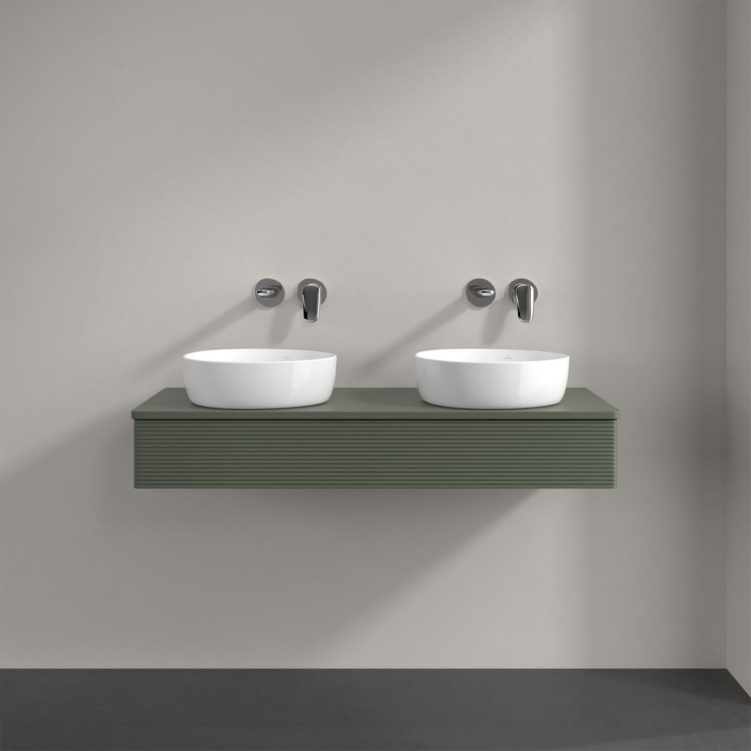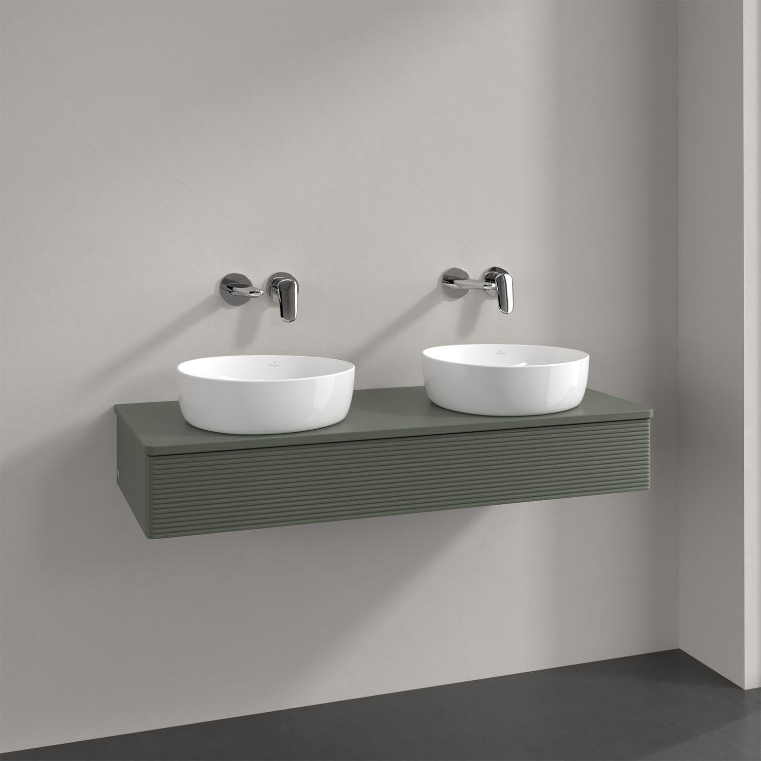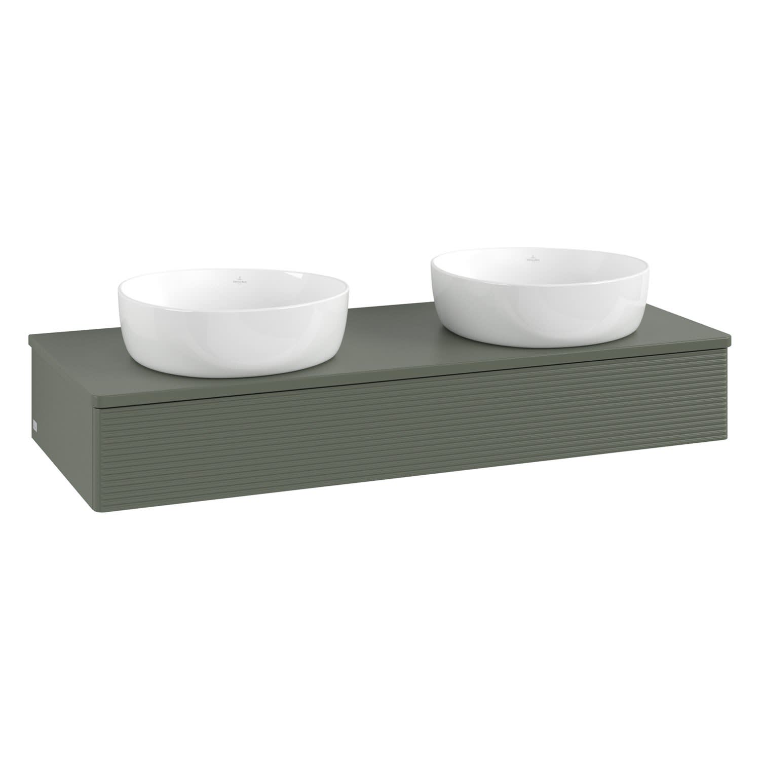 Villeroy & Boch Antao Waschbeckenunterschrank, 120 x 19 cm, 1 Auszug mit LED-Licht, Front mit Struktur, mit Hahnloch, für Waschtisch links und rechts