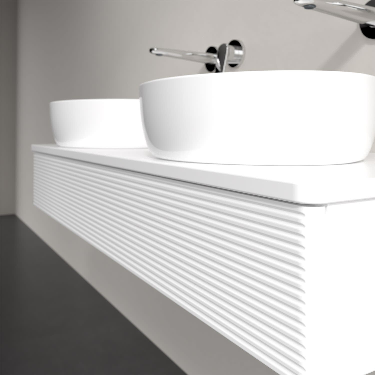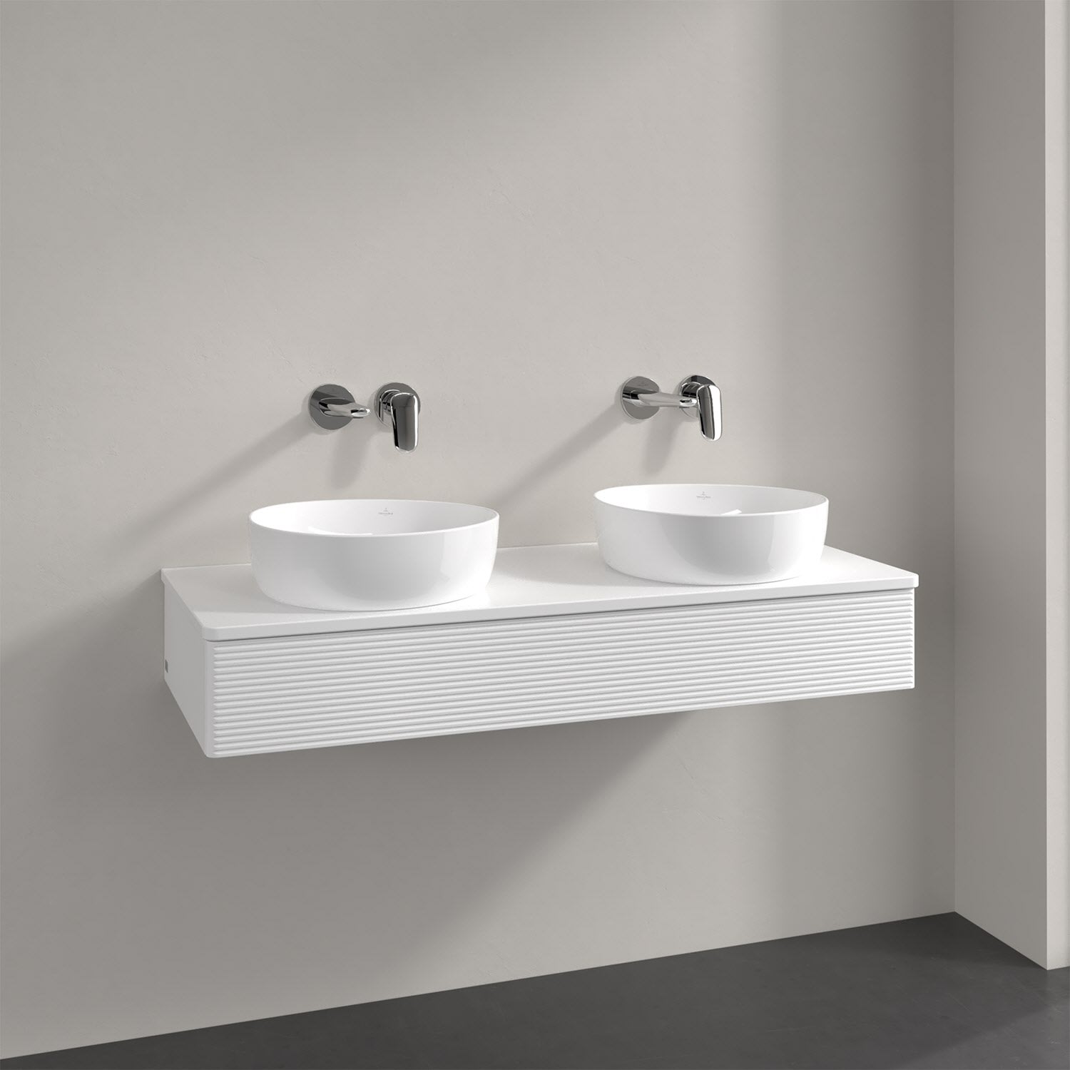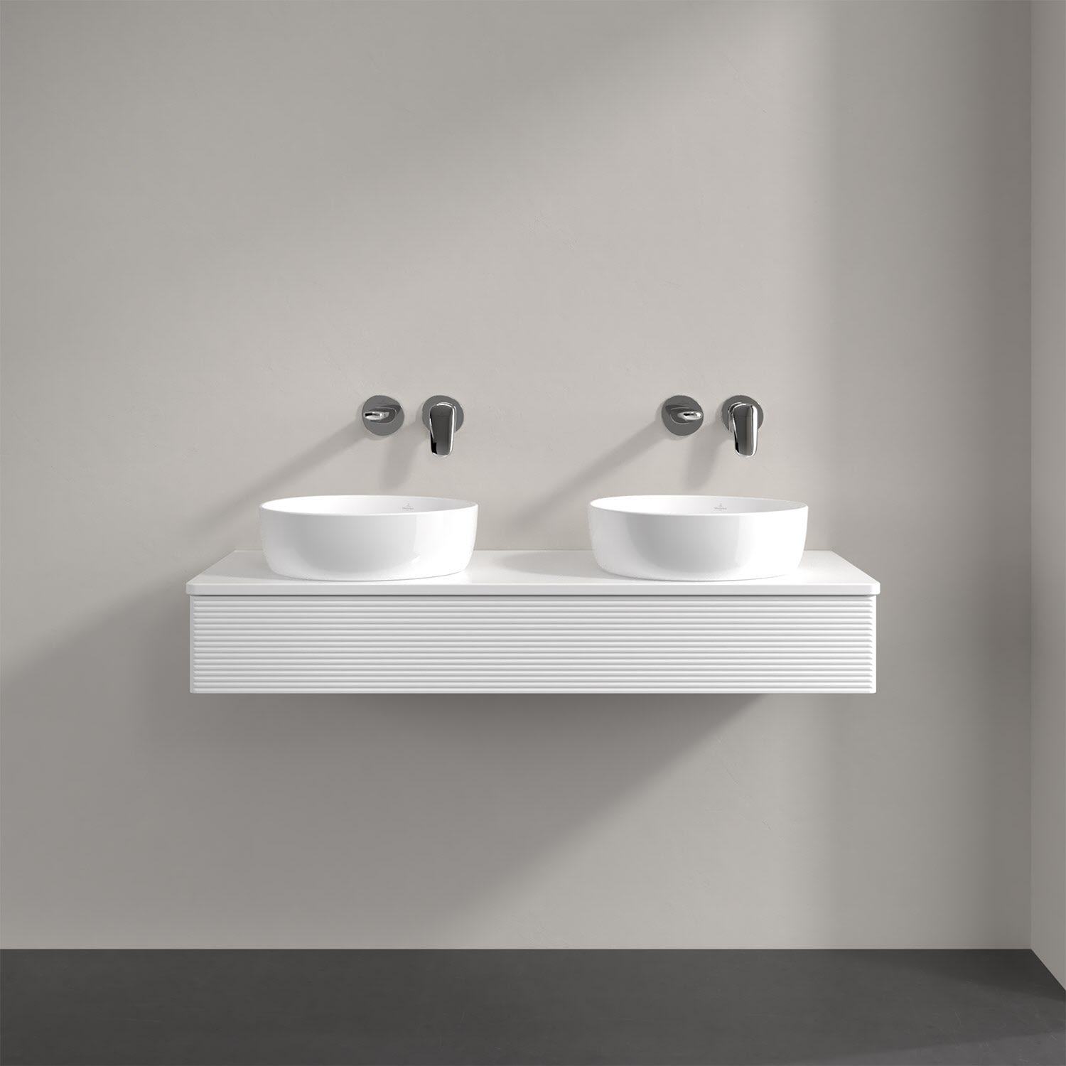 Der wandhängende Antao Waschtischunterschrank von Villeroy & Boch bietet nicht nur jede Menge Stauraum – er ist dank seines naturinspirierten Designs mit seinen abgerundeten Kanten auch noch besonders stilvoll und schafft eine gemütliche Atmosphäre im Badezimmer. Kombiniert mit zwei passenden Aufsatzwaschtischen also die ideale Wahl. Der geräumige Auszug bietet viel Platz, um alles Notwendige zu verstauen und Ordnung zu halten. Öffnen lässt er sich durch leichten Druck auf die strukturierte Front. Dabei aktiviert sich übrigens die Auszugsbeleuchtung in angenehmem Warmweiß. Dank Vollauszug hat man immer alles im Blick und der Antirutschboden verhindert ein Umfallen oder Verrutschen der Gegenstände. Einfach clever! Für eine besonders leichte Pflege sorgt die mehrschichtig deckend lackierte Oberfläche.