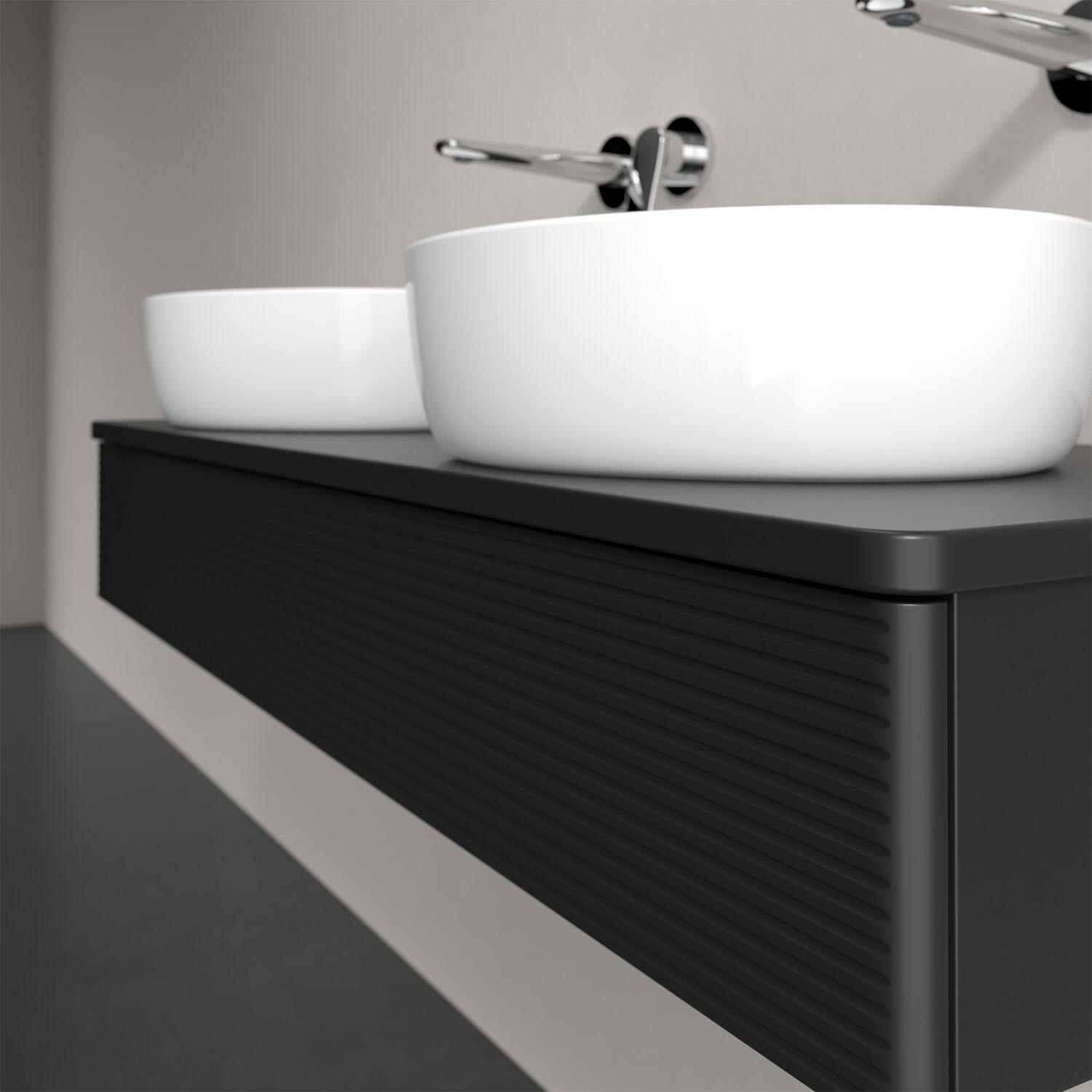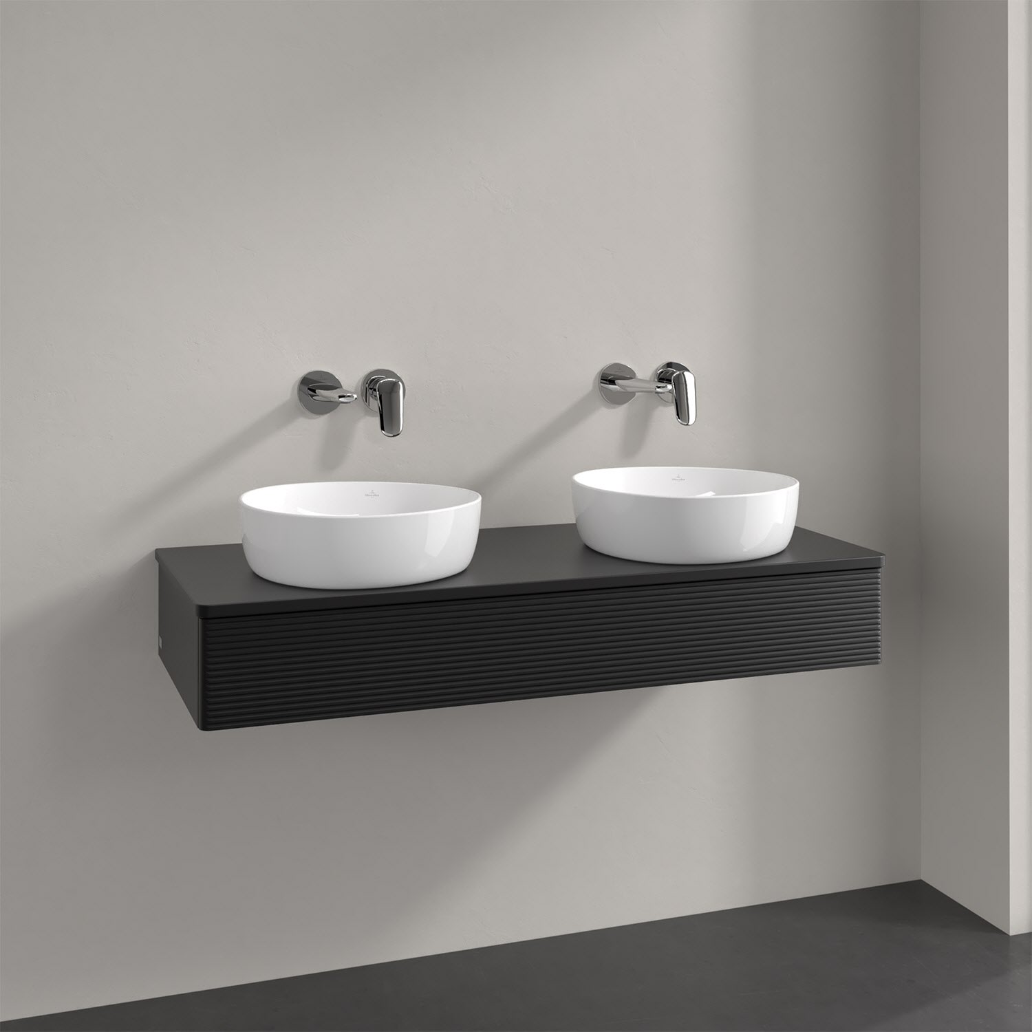 Der wandhängende Antao Waschtischunterschrank von Villeroy & Boch bietet nicht nur jede Menge Stauraum – er ist dank seines naturinspirierten Designs mit seinen abgerundeten Kanten auch noch besonders stilvoll und schafft eine gemütliche Atmosphäre im Badezimmer. Kombiniert mit zwei passenden Aufsatzwaschtischen also die ideale Wahl. Der geräumige Auszug bietet viel Platz, um alles Notwendige zu verstauen und Ordnung zu halten. Öffnen lässt er sich durch leichten Druck auf die strukturierte Front. Dabei aktiviert sich übrigens die Auszugsbeleuchtung in angenehmem Warmweiß. Dank Vollauszug hat man immer alles im Blick und der Antirutschboden verhindert ein Umfallen oder Verrutschen der Gegenstände. Einfach clever! Für eine besonders leichte Pflege sorgt die mehrschichtig deckend lackierte Oberfläche.