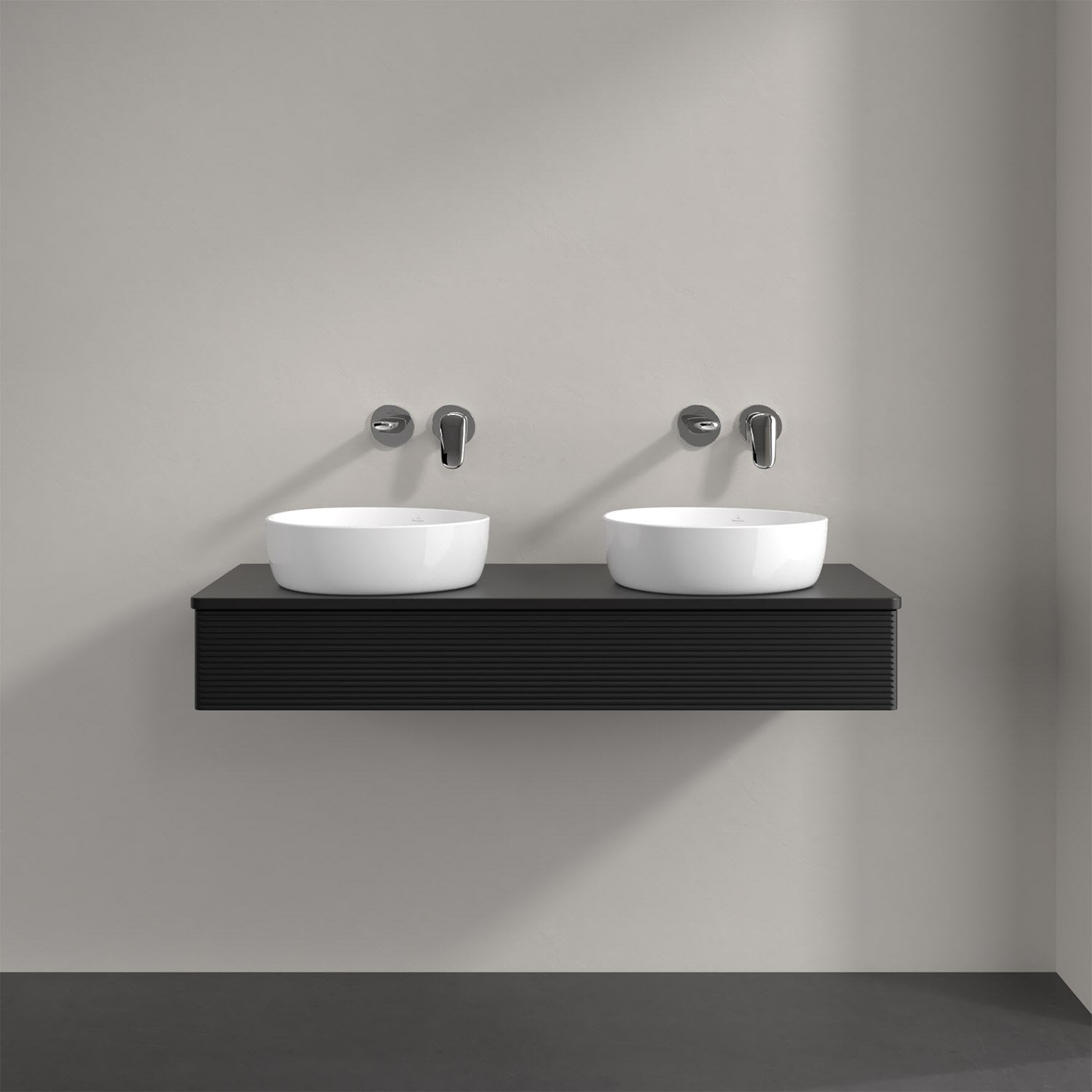 Villeroy & Boch Antao Waschbeckenunterschrank, 120 x 19 cm, 1 Auszug mit LED-Licht, Front mit Struktur, mit Hahnloch, für Waschtisch links und rechts