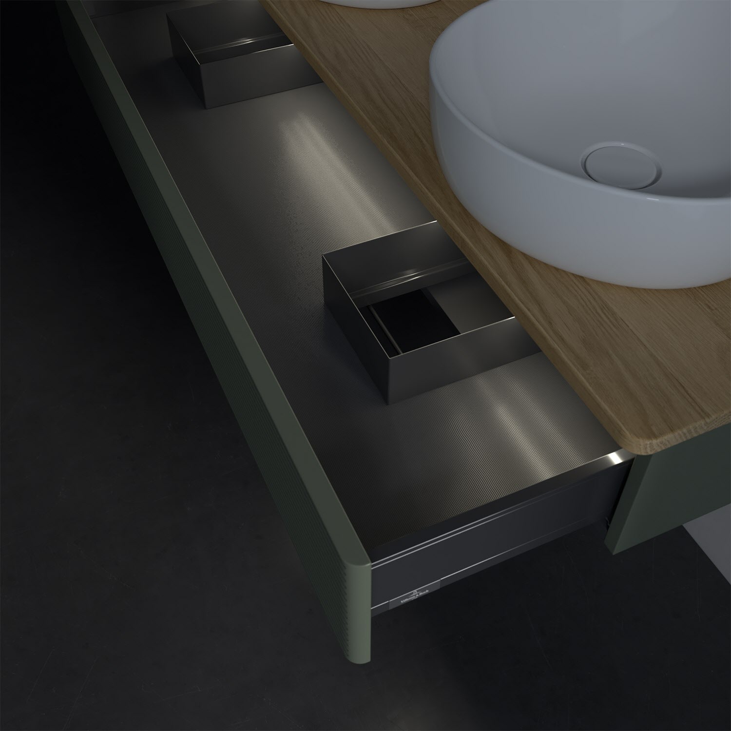 Der wandhängende Antao Waschtischunterschrank von Villeroy & Boch bietet nicht nur jede Menge Stauraum – er ist dank seines naturinspirierten Designs mit seinen abgerundeten Kanten auch noch besonders stilvoll und schafft eine gemütliche Atmosphäre im Badezimmer. Kombiniert mit zwei passenden Aufsatzwaschtischen also die ideale Wahl. Der geräumige Auszug bietet viel Platz, um alles Notwendige zu verstauen und Ordnung zu halten. Öffnen lässt er sich durch leichten Druck auf die strukturierte Front. Dabei aktiviert sich übrigens die Auszugsbeleuchtung in angenehmem Warmweiß. Dank Vollauszug hat man immer alles im Blick und der Antirutschboden verhindert ein Umfallen oder Verrutschen der Gegenstände. Einfach clever! Für eine besonders leichte Pflege sorgt die mehrschichtig deckend lackierte Oberfläche. Bei der Ausführung in Massivholz wird dank des verarbeiteten Massivholzes jedes Möbel zu einem Unikat, das sich durch das lebendige Naturmaterial durch seine einzigartige Struktur und Maserung auszeichnet.