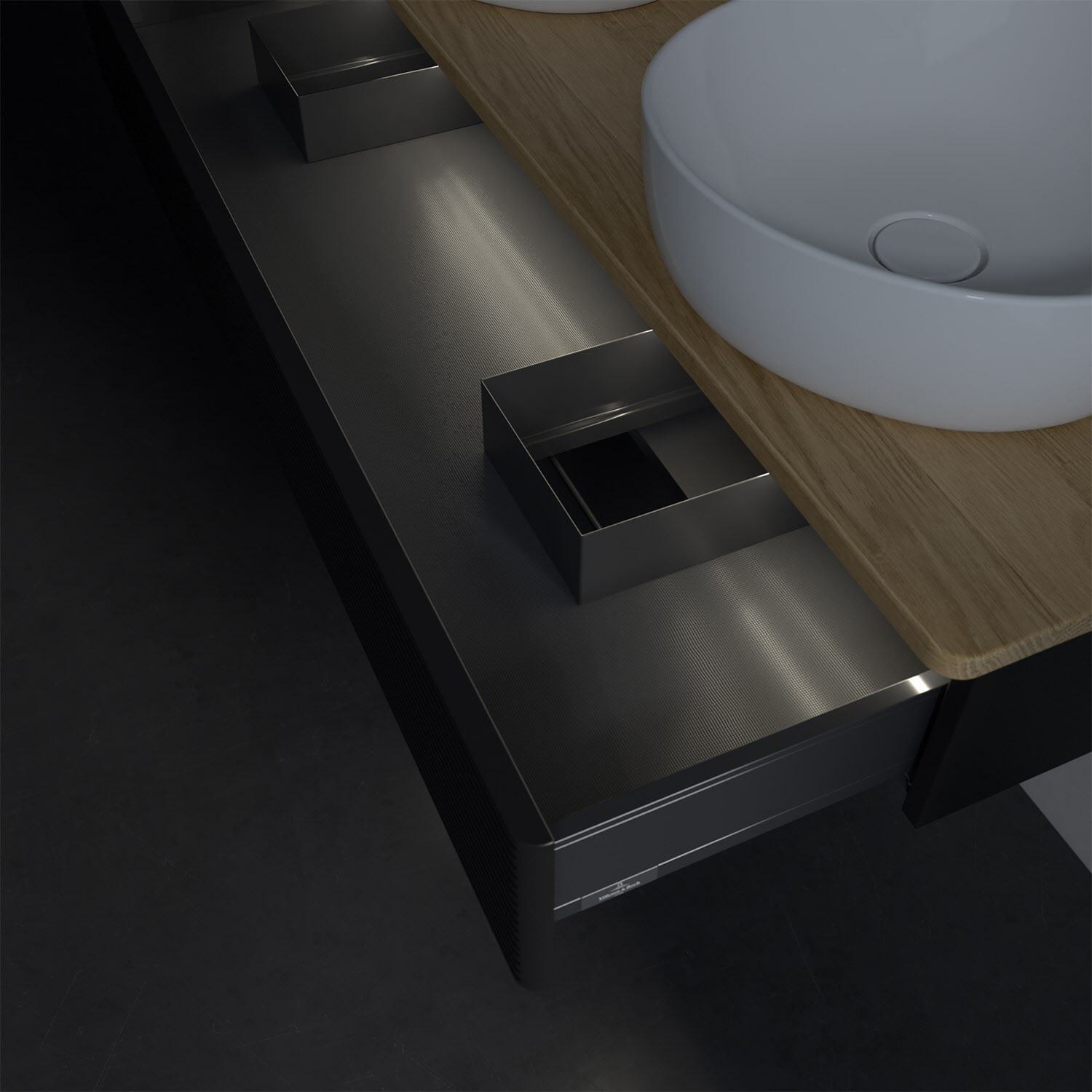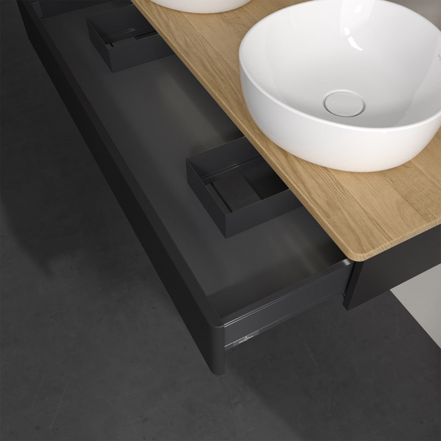 Der wandhängende Antao Waschtischunterschrank von Villeroy & Boch bietet nicht nur jede Menge Stauraum – er ist dank seines naturinspirierten Designs mit seinen abgerundeten Kanten auch noch besonders stilvoll und schafft eine gemütliche Atmosphäre im Badezimmer. Kombiniert mit zwei passenden Aufsatzwaschtischen also die ideale Wahl. Der geräumige Auszug bietet viel Platz, um alles Notwendige zu verstauen und Ordnung zu halten. Öffnen lässt er sich durch leichten Druck auf die strukturierte Front. Dabei aktiviert sich übrigens die Auszugsbeleuchtung in angenehmem Warmweiß. Dank Vollauszug hat man immer alles im Blick und der Antirutschboden verhindert ein Umfallen oder Verrutschen der Gegenstände. Einfach clever! Für eine besonders leichte Pflege sorgt die mehrschichtig deckend lackierte Oberfläche. Bei der Ausführung in Massivholz wird dank des verarbeiteten Massivholzes jedes Möbel zu einem Unikat, das sich durch das lebendige Naturmaterial durch seine einzigartige Struktur und Maserung auszeichnet.