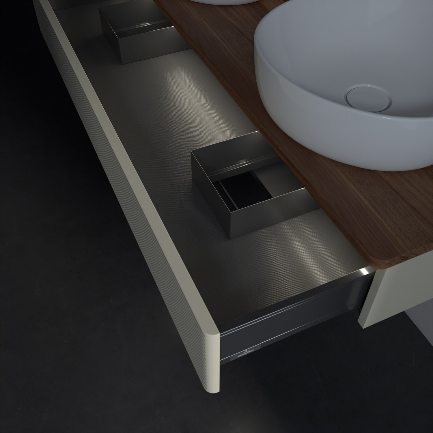 - kein Umfallen oder Verrutschen von Pflegeprodukten in den Schubladen dank rutschhemmendem Boden