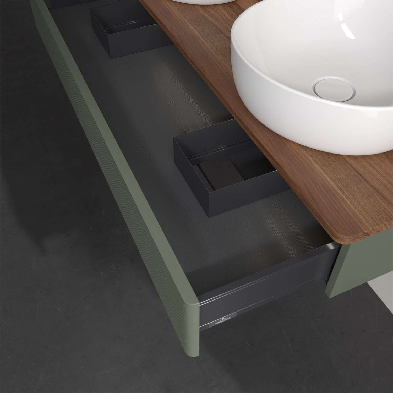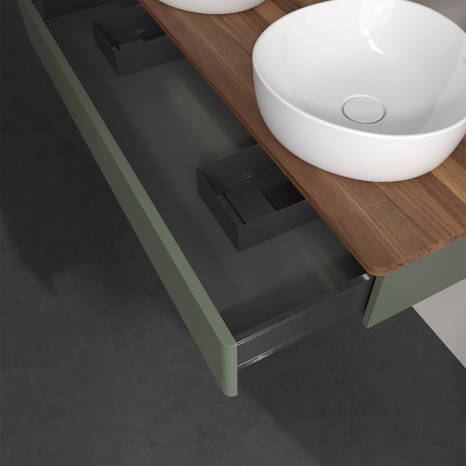 Villeroy & Boch Antao Waschbeckenunterschrank, 120 x 19 cm, 1 Auszug mit LED-Licht, Front mit Struktur, mit Hahnloch, für Waschtisch links und rechts