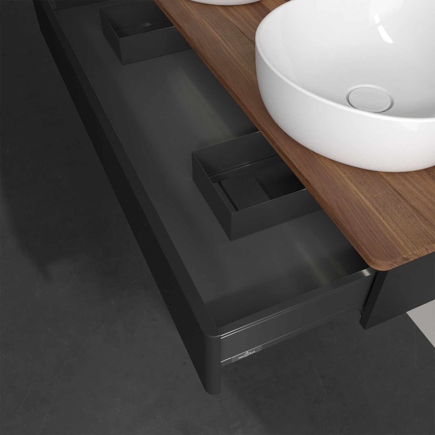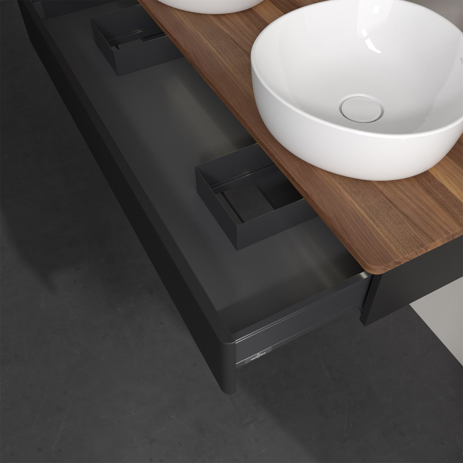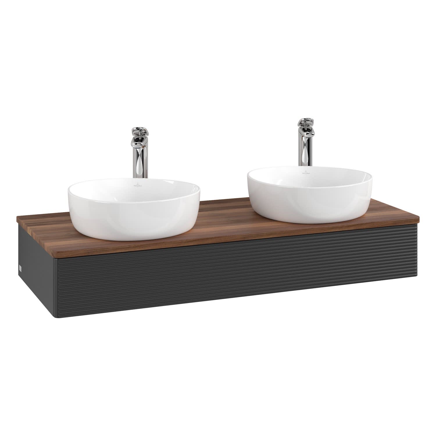 Villeroy & Boch Antao Waschbeckenunterschrank, 120 x 19 cm, 1 Auszug mit LED-Licht, Front mit Struktur, mit Hahnloch, für Waschtisch links und rechts