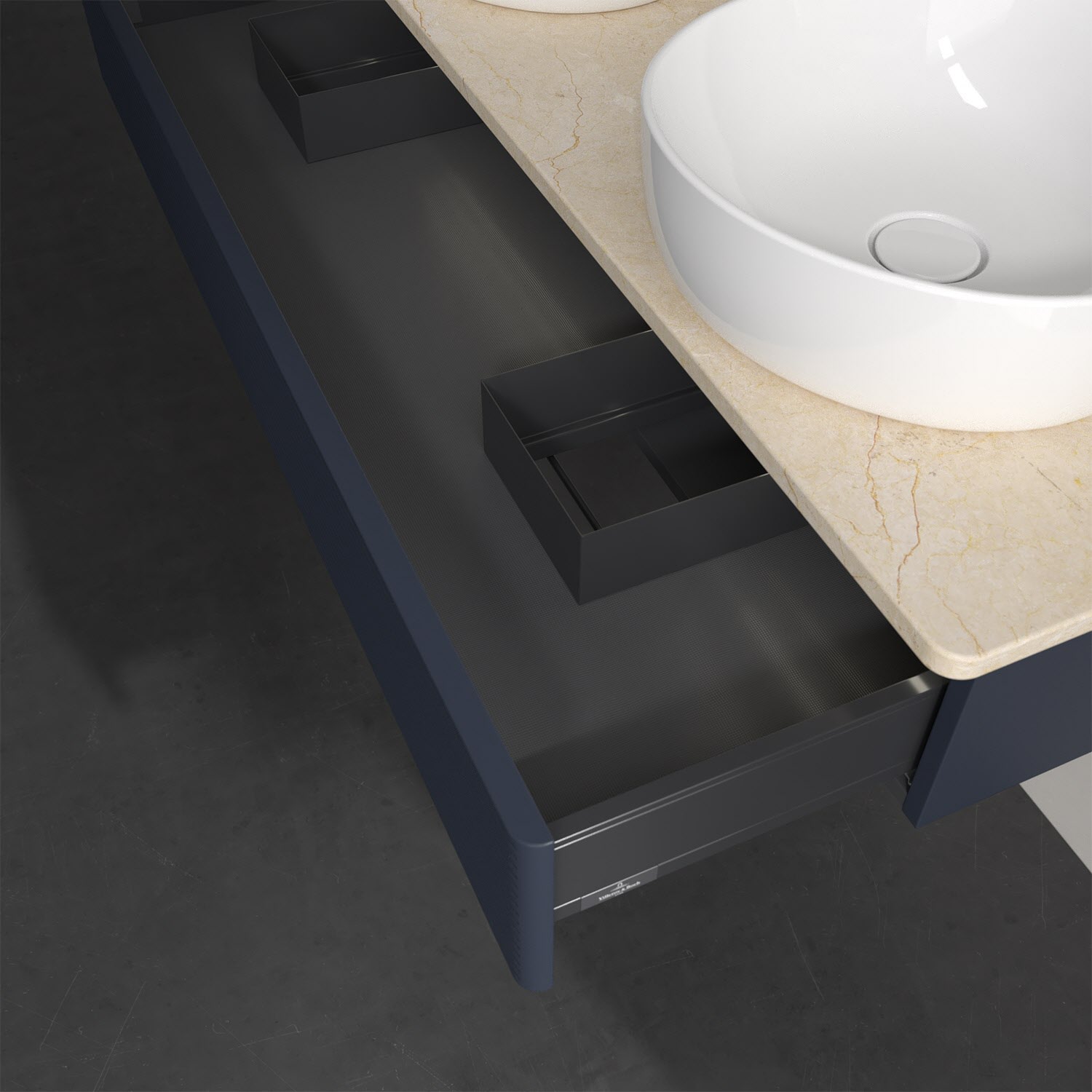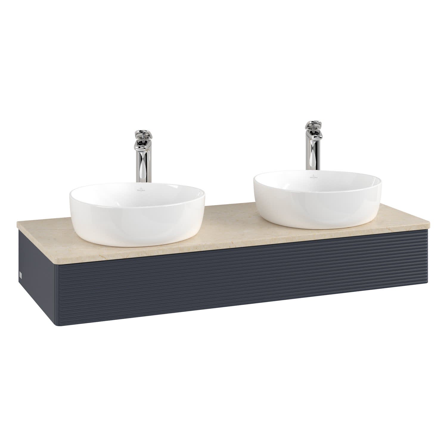 Villeroy & Boch Antao Waschbeckenunterschrank, 120 x 19 cm, 1 Auszug mit LED-Licht, Front mit Struktur, mit Hahnloch, für Waschtisch links und rechts