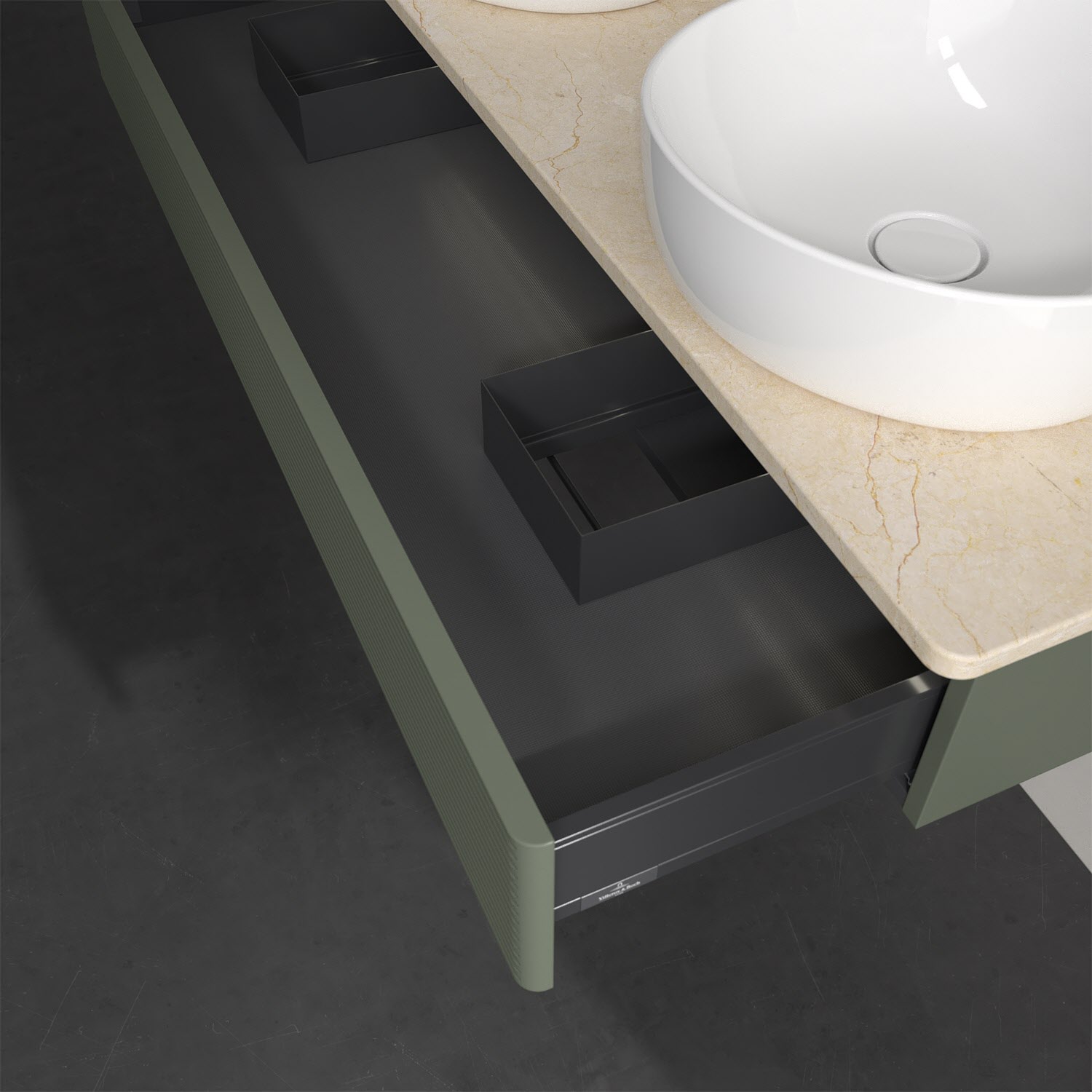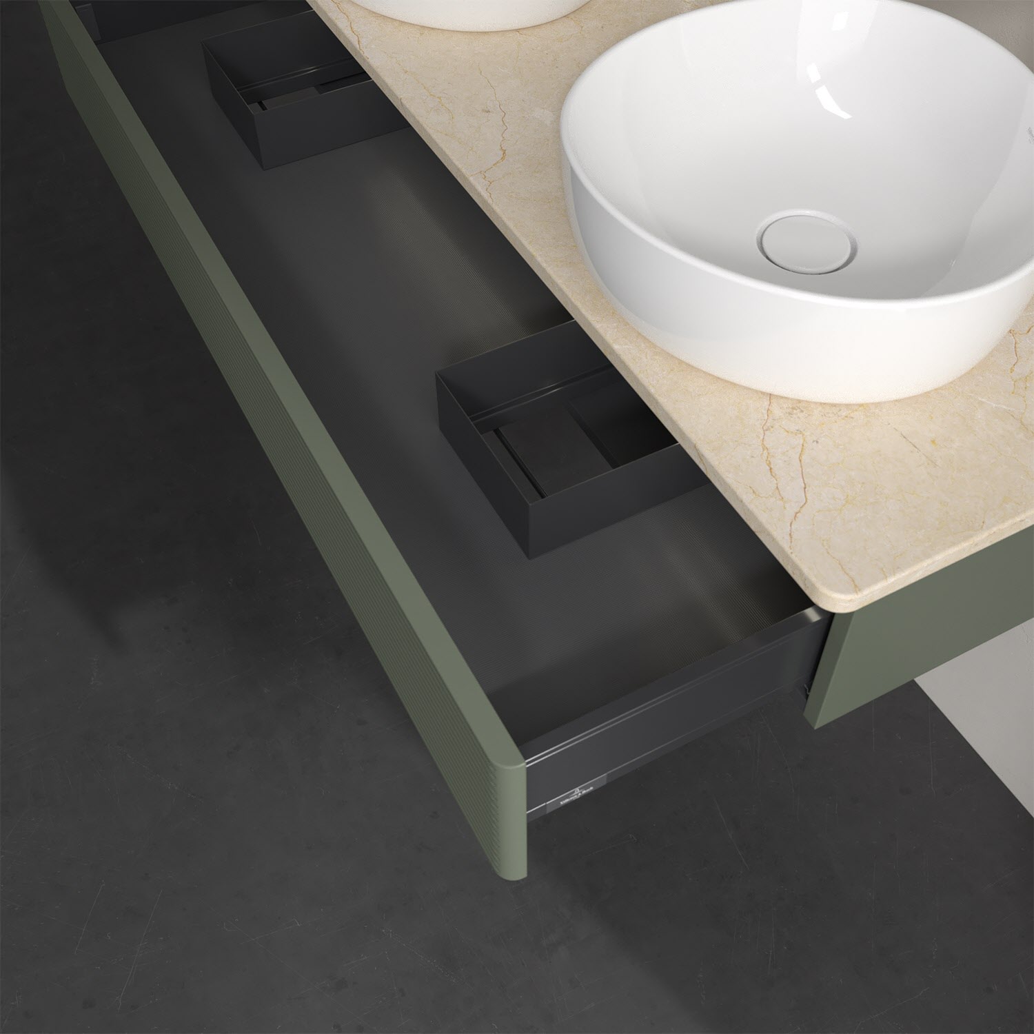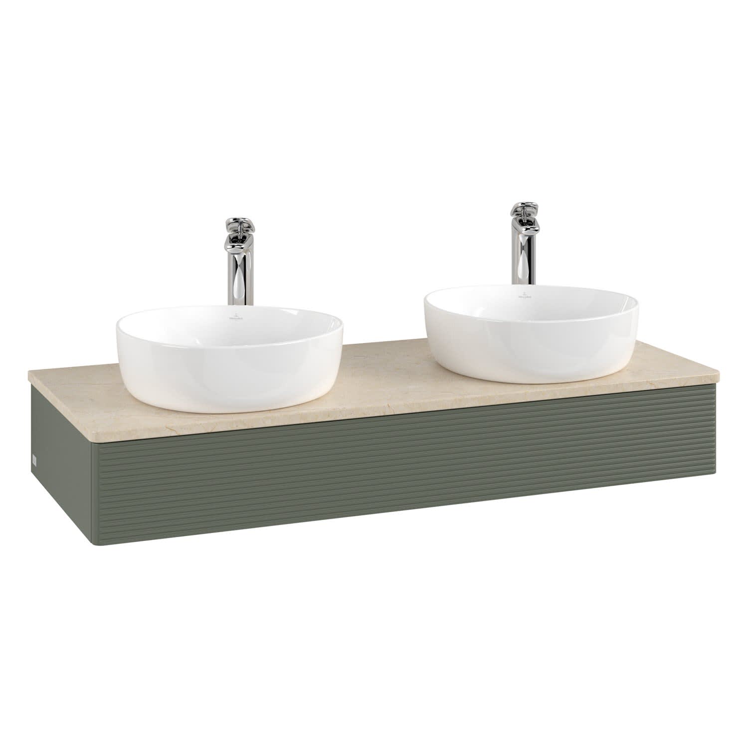 Villeroy & Boch Antao Waschbeckenunterschrank, 120 x 19 cm, 1 Auszug mit LED-Licht, Front mit Struktur, mit Hahnloch, für Waschtisch links und rechts