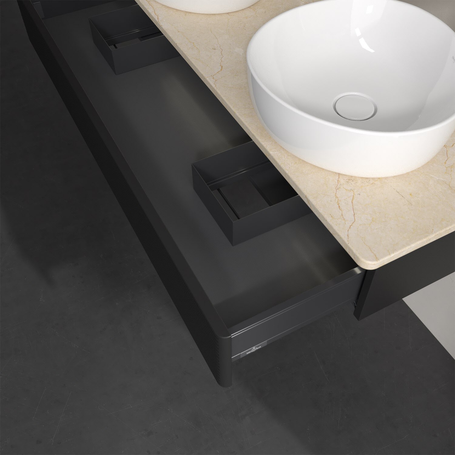 Villeroy & Boch Antao Waschbeckenunterschrank, 120 x 19 cm, 1 Auszug mit LED-Licht, Front mit Struktur, mit Hahnloch, für Waschtisch links und rechts