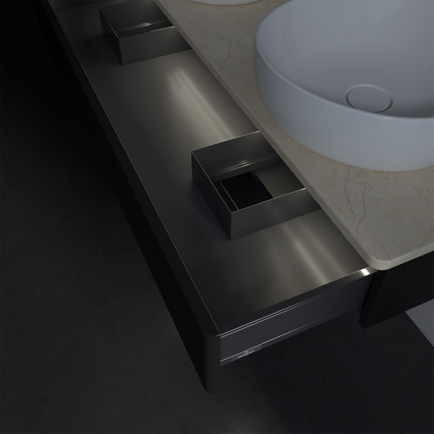 - kein Umfallen oder Verrutschen von Pflegeprodukten in den Schubladen dank rutschhemmendem Boden