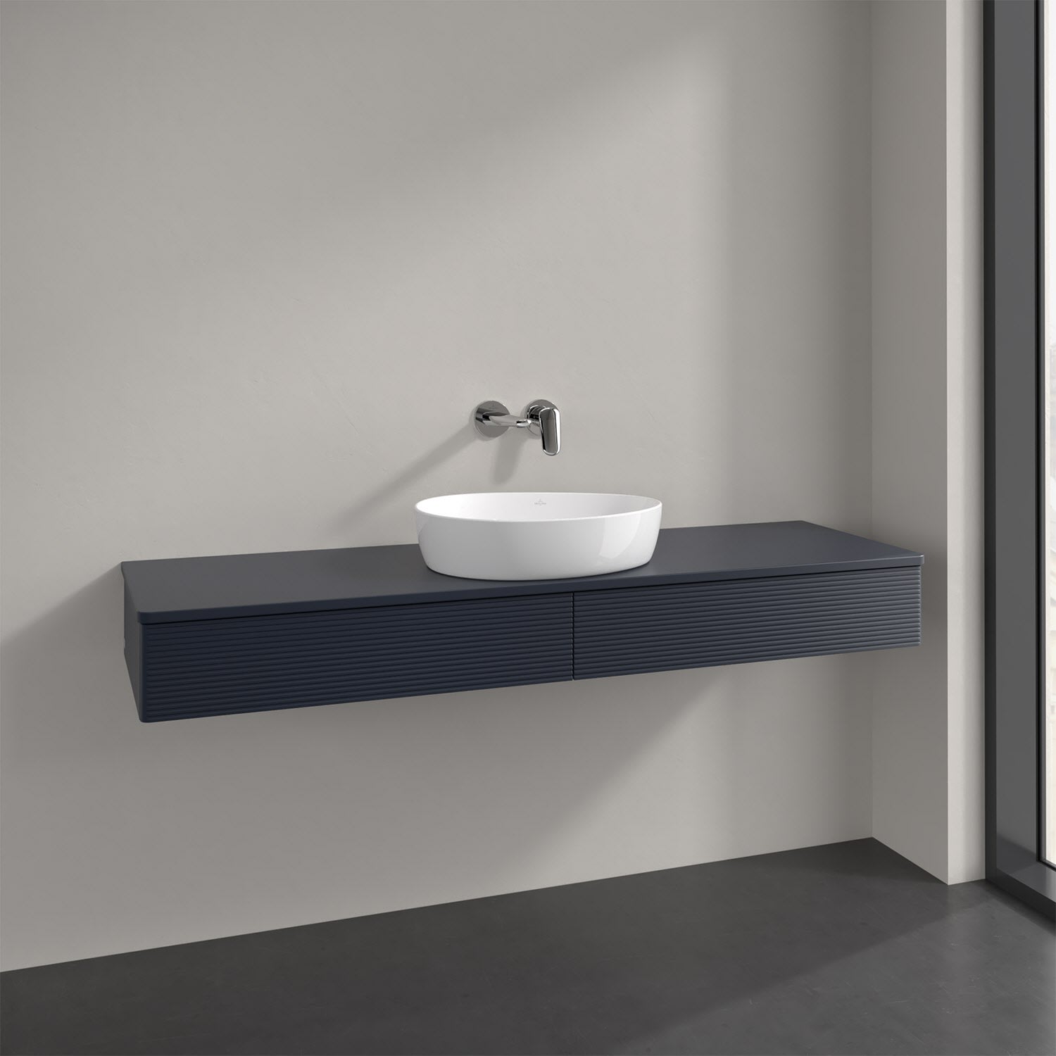 Villeroy & Boch Antao Waschbeckenunterschrank, 160 x 19 cm, 2 Auszüge mit LED-Licht, Front mit Struktur, mit Hahnloch, für Waschtisch mittig