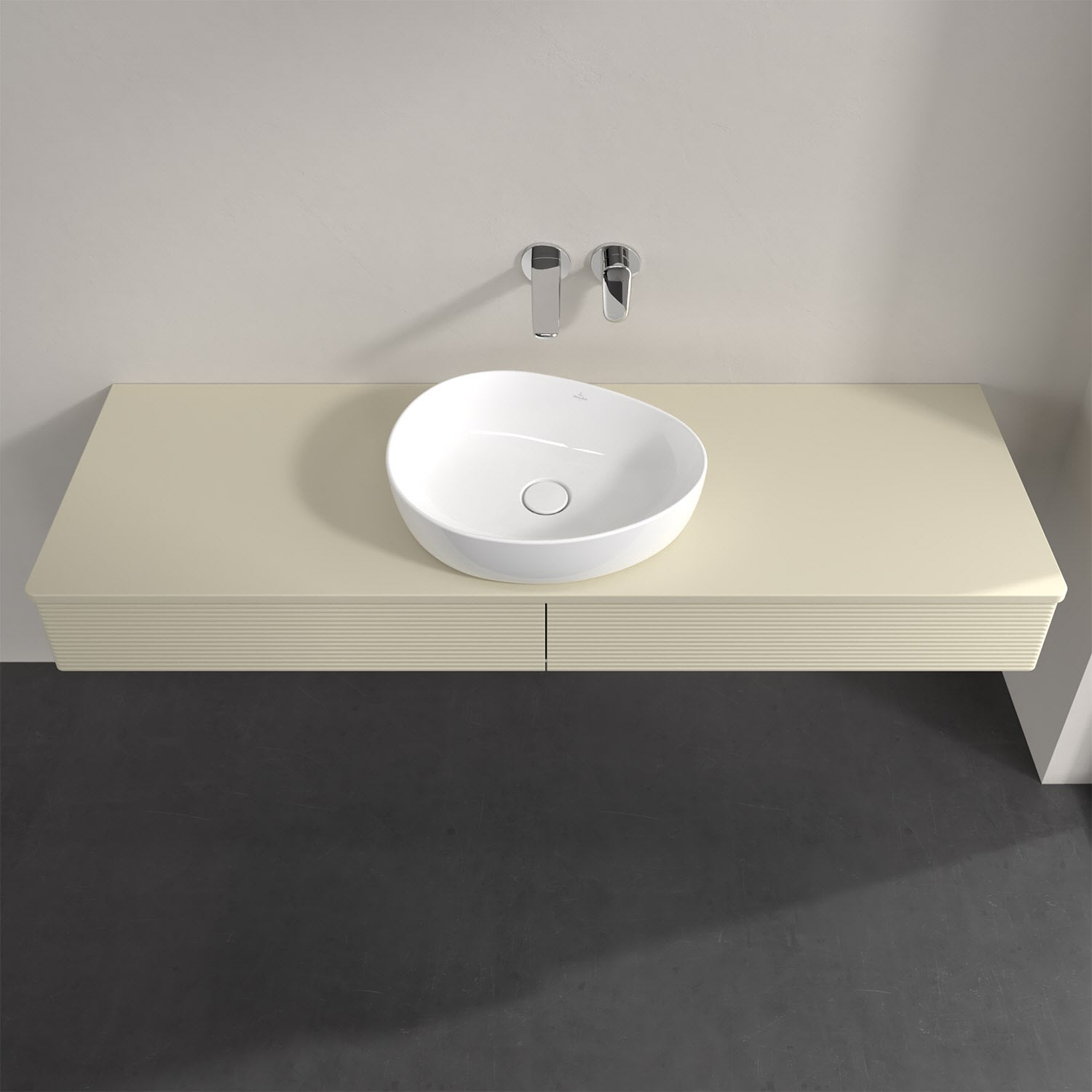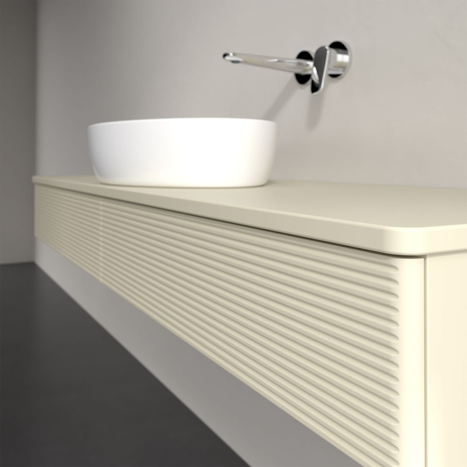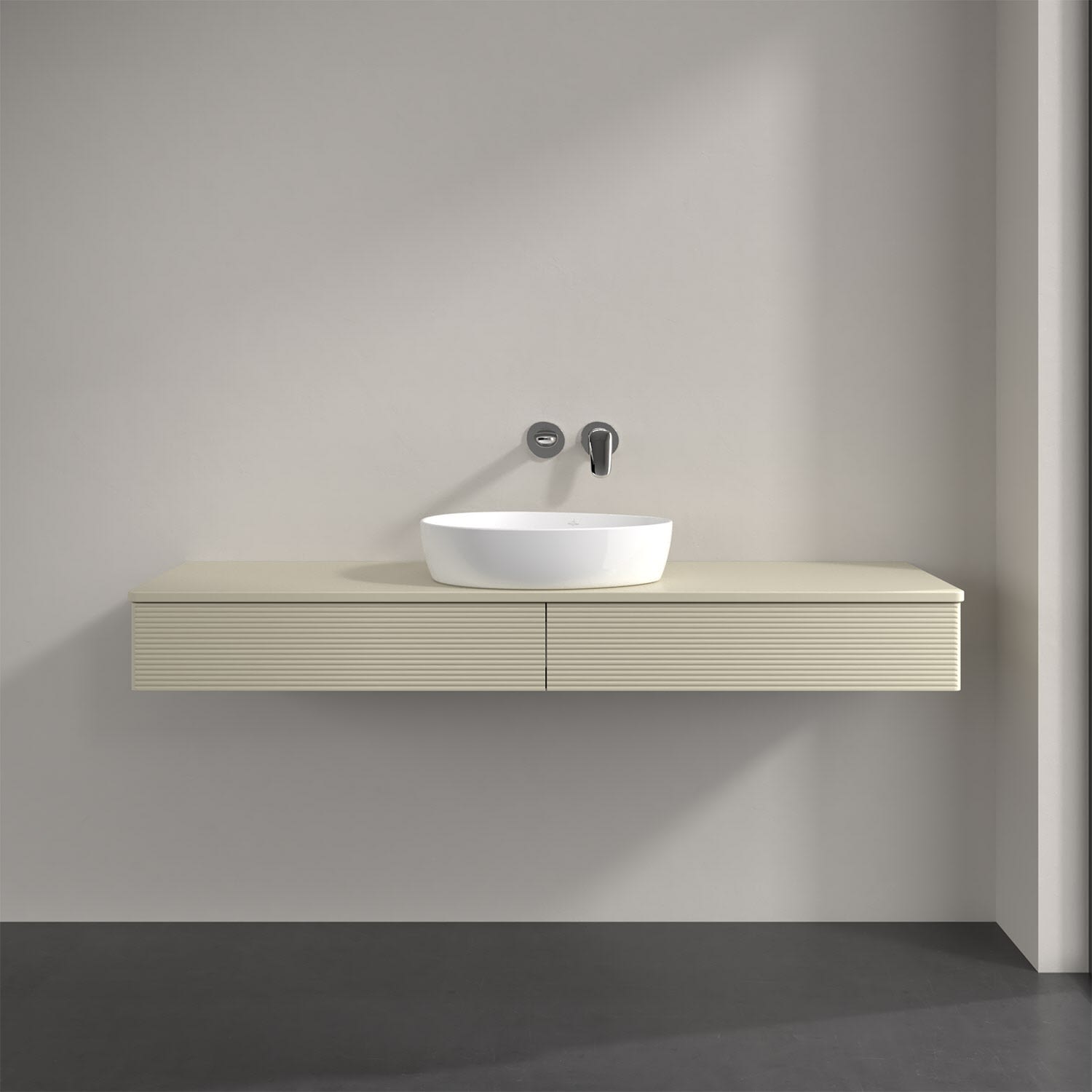 Villeroy & Boch Antao Waschbeckenunterschrank, 160 x 19 cm, 2 Auszüge mit LED-Licht, Front mit Struktur, mit Hahnloch, für Waschtisch mittig