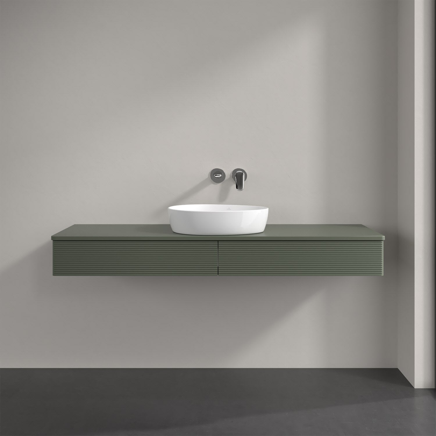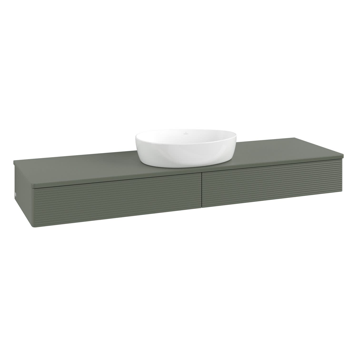 Villeroy & Boch Antao Waschbeckenunterschrank, 160 x 19 cm, 2 Auszüge mit LED-Licht, Front mit Struktur, mit Hahnloch, für Waschtisch mittig