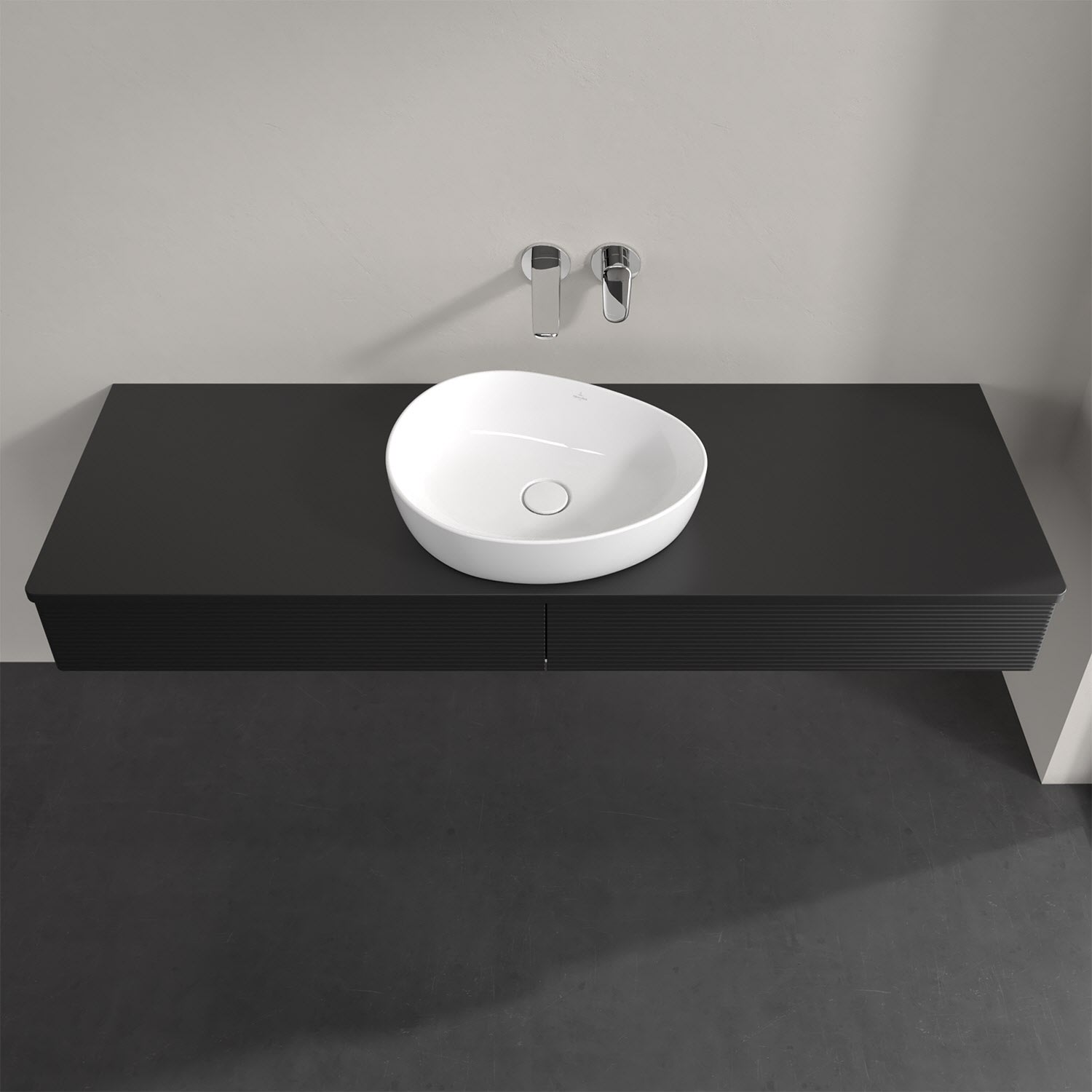 Villeroy & Boch Antao Waschbeckenunterschrank, 160 x 19 cm, 2 Auszüge mit LED-Licht, Front mit Struktur, mit Hahnloch, für Waschtisch mittig