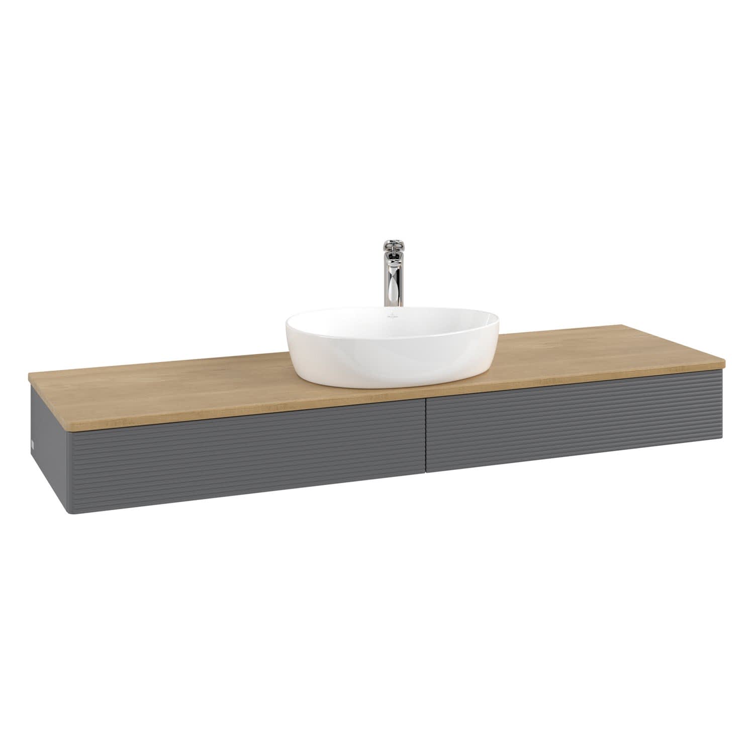 Villeroy & Boch Antao Waschbeckenunterschrank, 160 x 19 cm, 2 Auszüge mit LED-Licht, Front mit Struktur, mit Hahnloch, für Waschtisch mittig