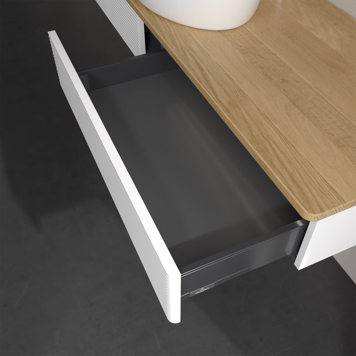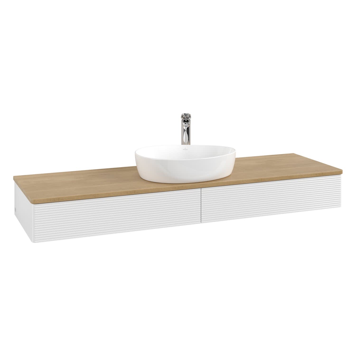 Villeroy & Boch Antao Waschbeckenunterschrank, 160 x 19 cm, 2 Auszüge mit LED-Licht, Front mit Struktur, mit Hahnloch, für Waschtisch mittig