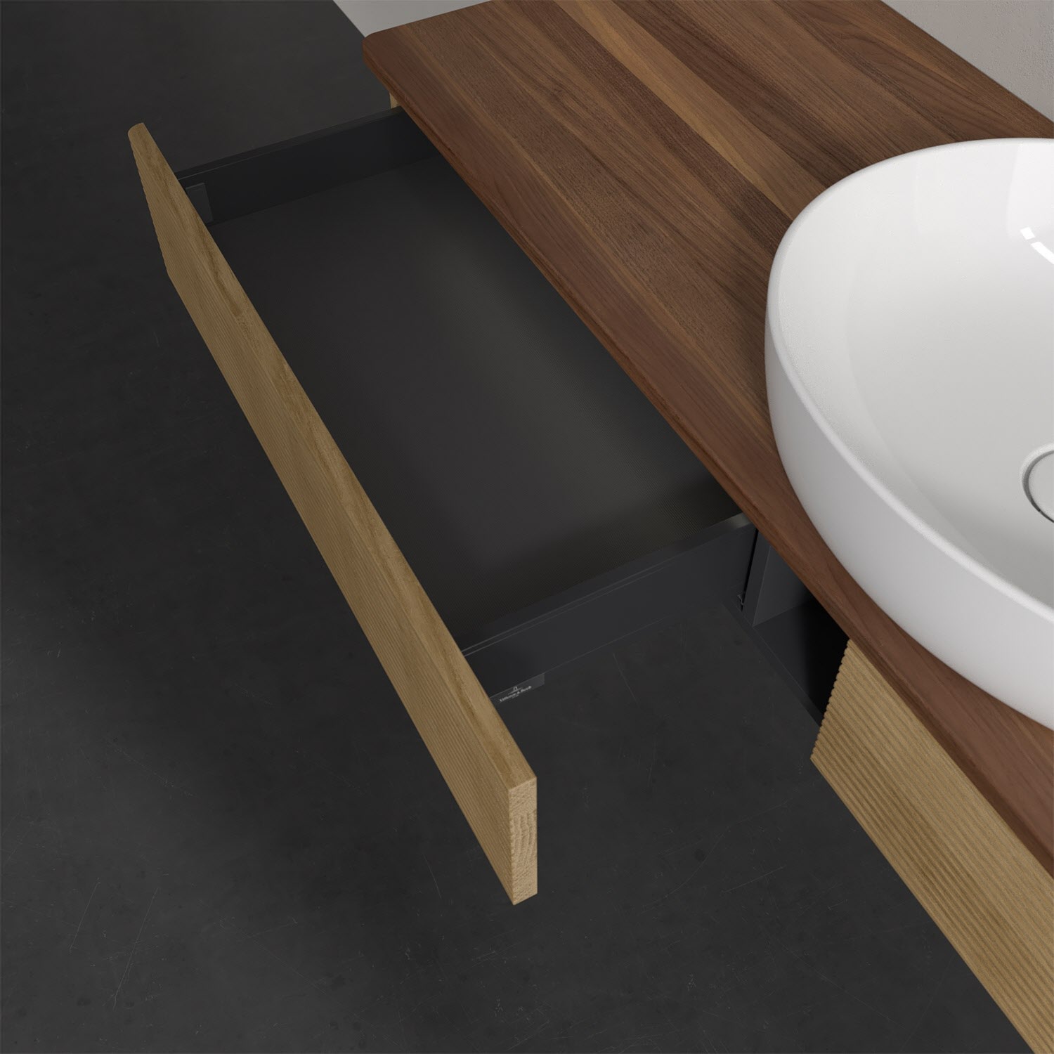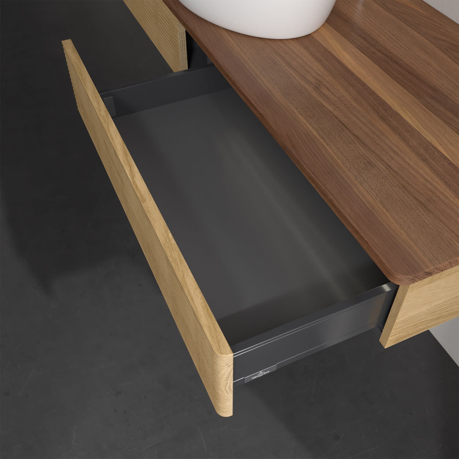 Villeroy & Boch Antao Waschbeckenunterschrank, 160 x 19 cm, 2 Auszüge mit LED-Licht, Front mit Struktur, mit Hahnloch, für Waschtisch mittig
