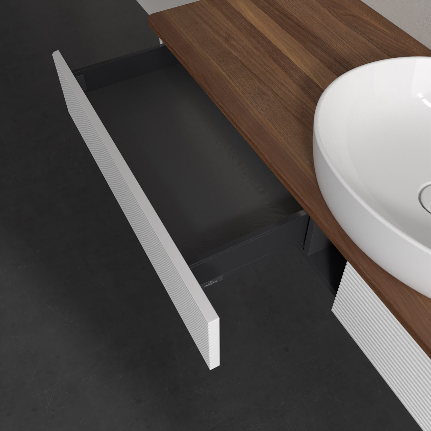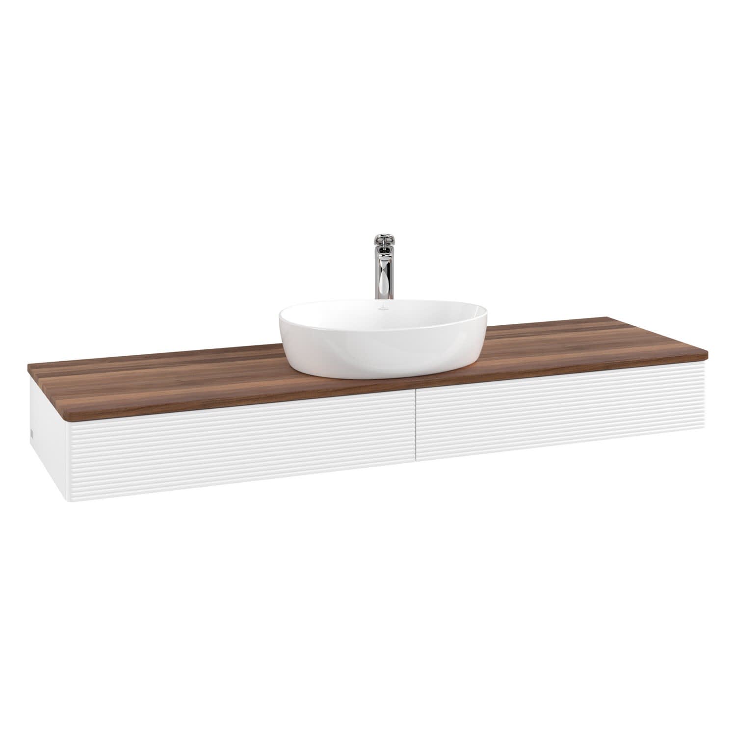 Villeroy & Boch Antao Waschbeckenunterschrank, 160 x 19 cm, 2 Auszüge mit LED-Licht, Front mit Struktur, mit Hahnloch, für Waschtisch mittig