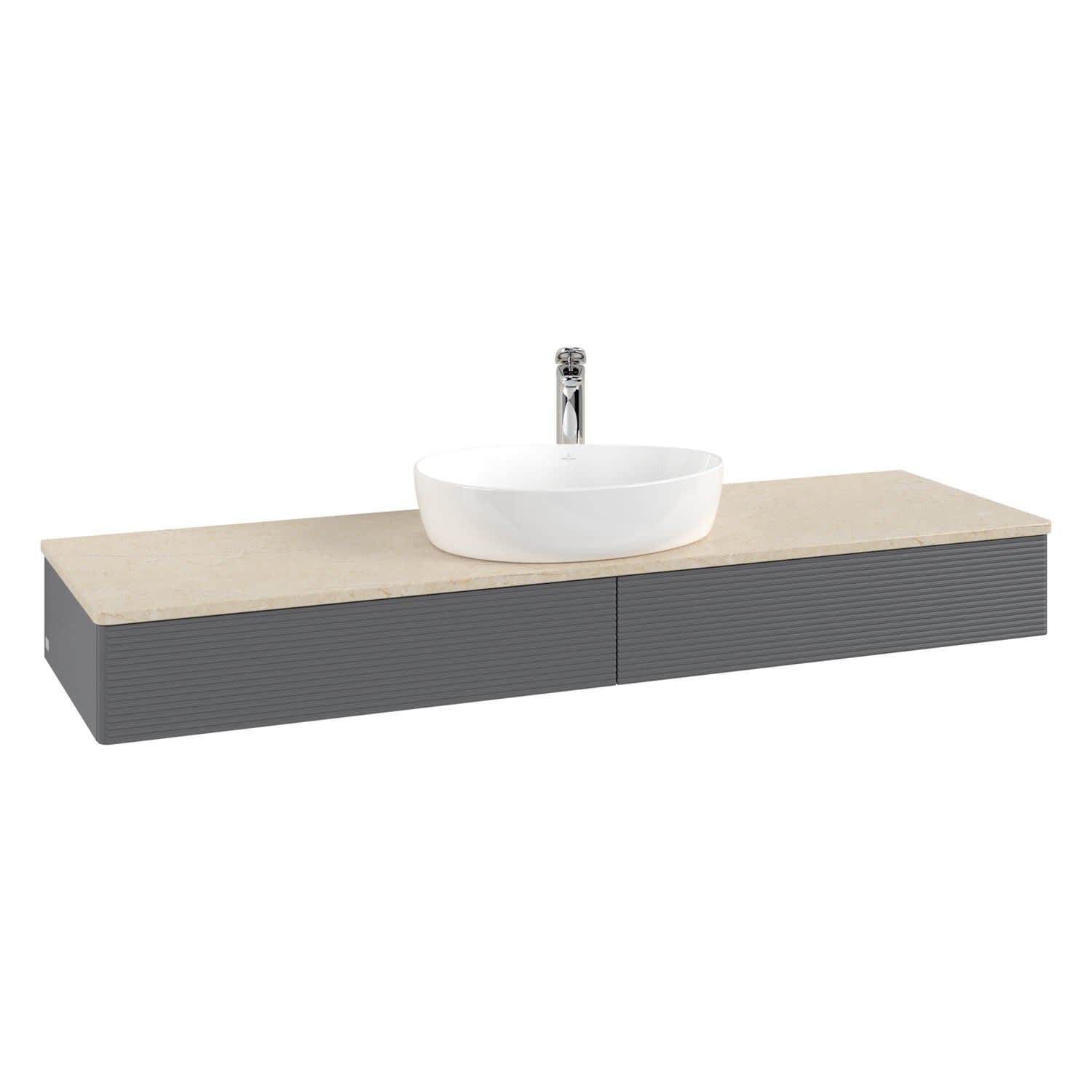 Villeroy & Boch Antao Waschbeckenunterschrank, 160 x 19 cm, 2 Auszüge mit LED-Licht, Front mit Struktur, mit Hahnloch, für Waschtisch mittig