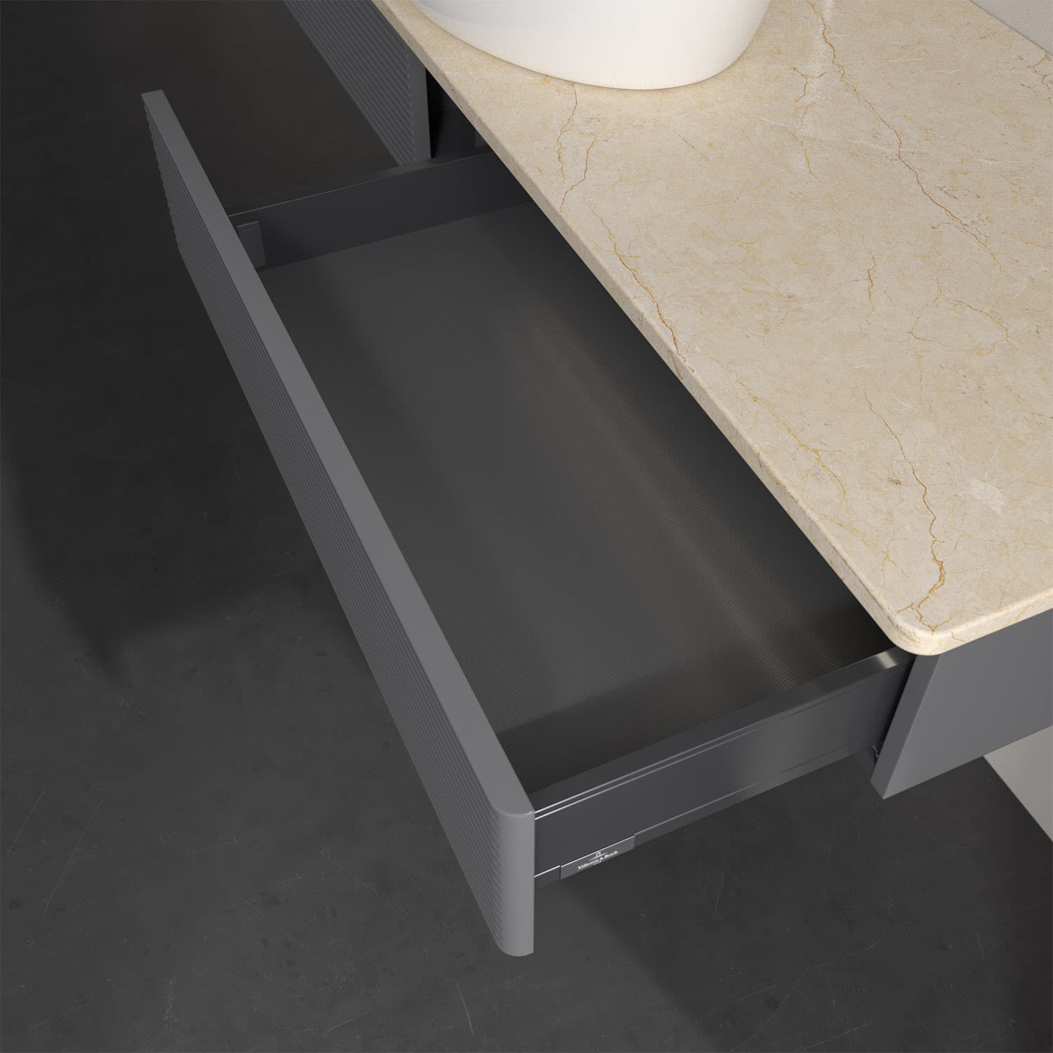 - kein Umfallen oder Verrutschen von Pflegeprodukten in den Schubladen dank rutschhemmendem Boden
